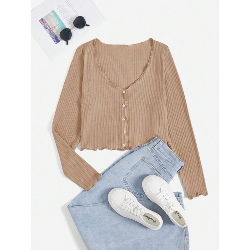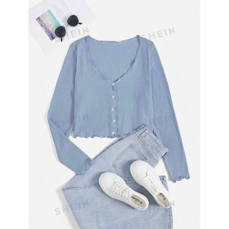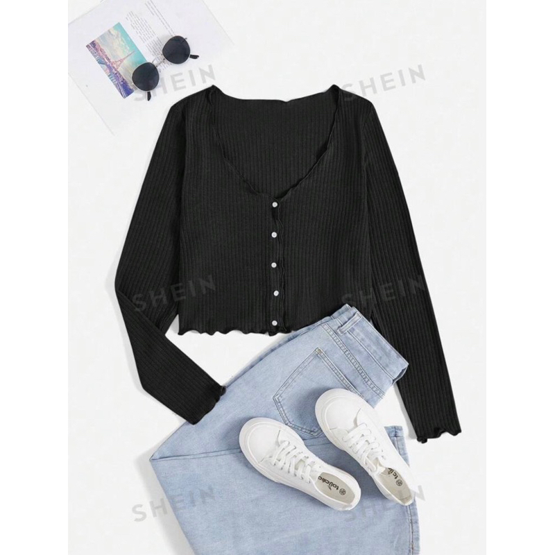 เสื้อแขนยาว shein กระดุมแกะไม่ได้ อก38-47 นิ้ว เสื้อครอปสาวอวบ ของใหม่