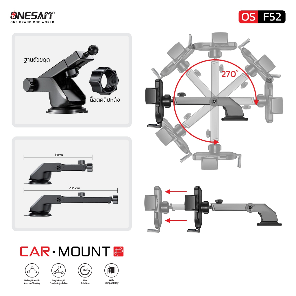 ONESAM รุ่น OS-F52 ที่ยึดมือถือในรถยนต์ ของแท้ 100% รับประกัน 1 ปี