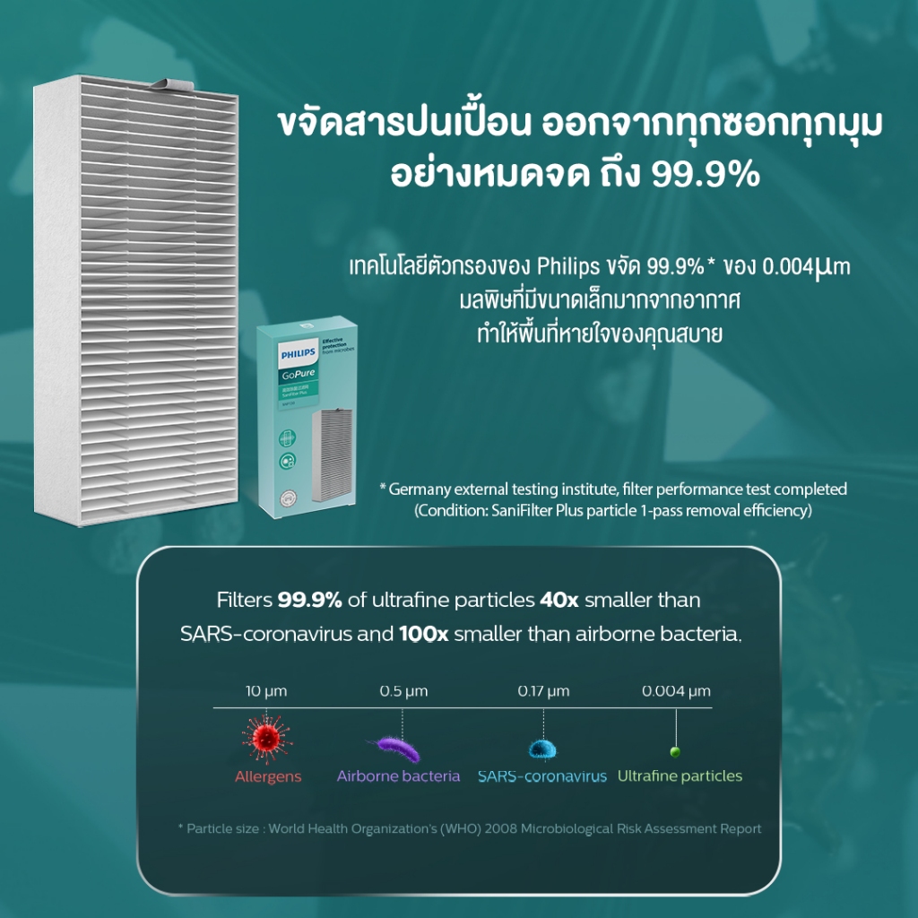 SaniFilter Plus คือแผ่นกรองขั้นสูงสำหรับเครื่องฟอกอากาศในรถ GoPure Style 7000 ด้วยชั้นการยับยั้งการเจริญเติบโตของจุลินทรีย์ จึงสามารถด