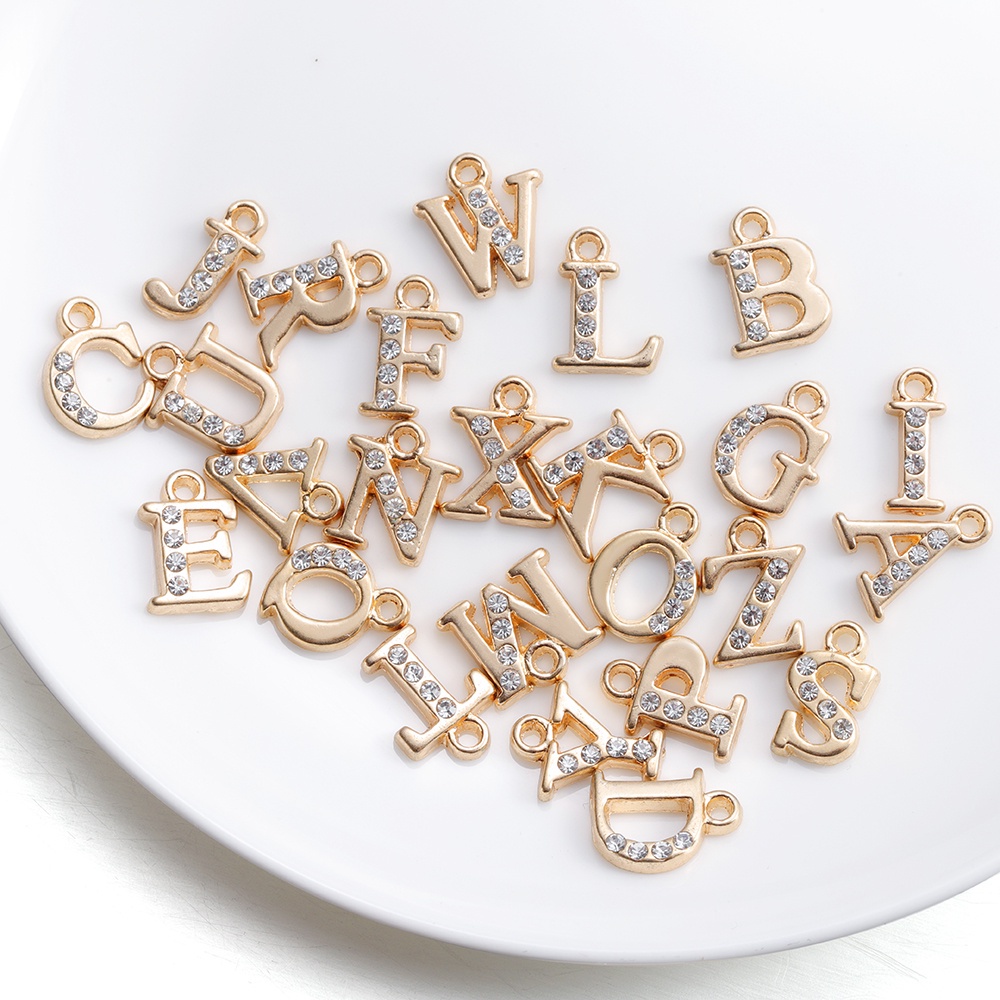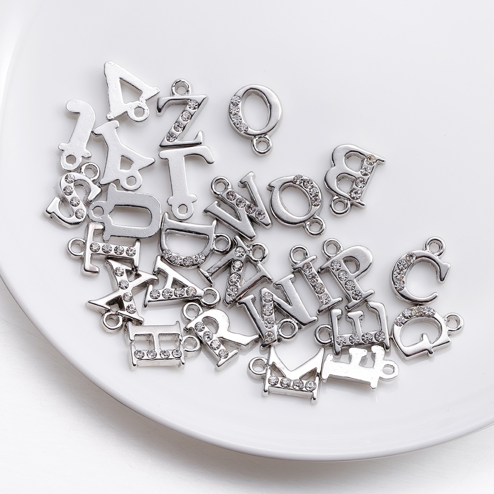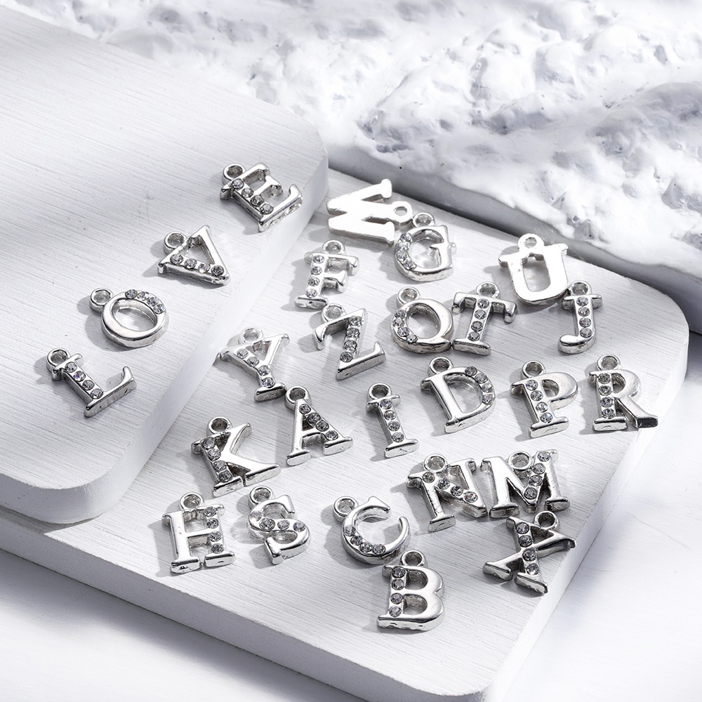 จี้ตัวอักษรเพชร 26ชิ้น โลหะผสม สำหรับสร้อยคอ-สร้อยข้อมือ