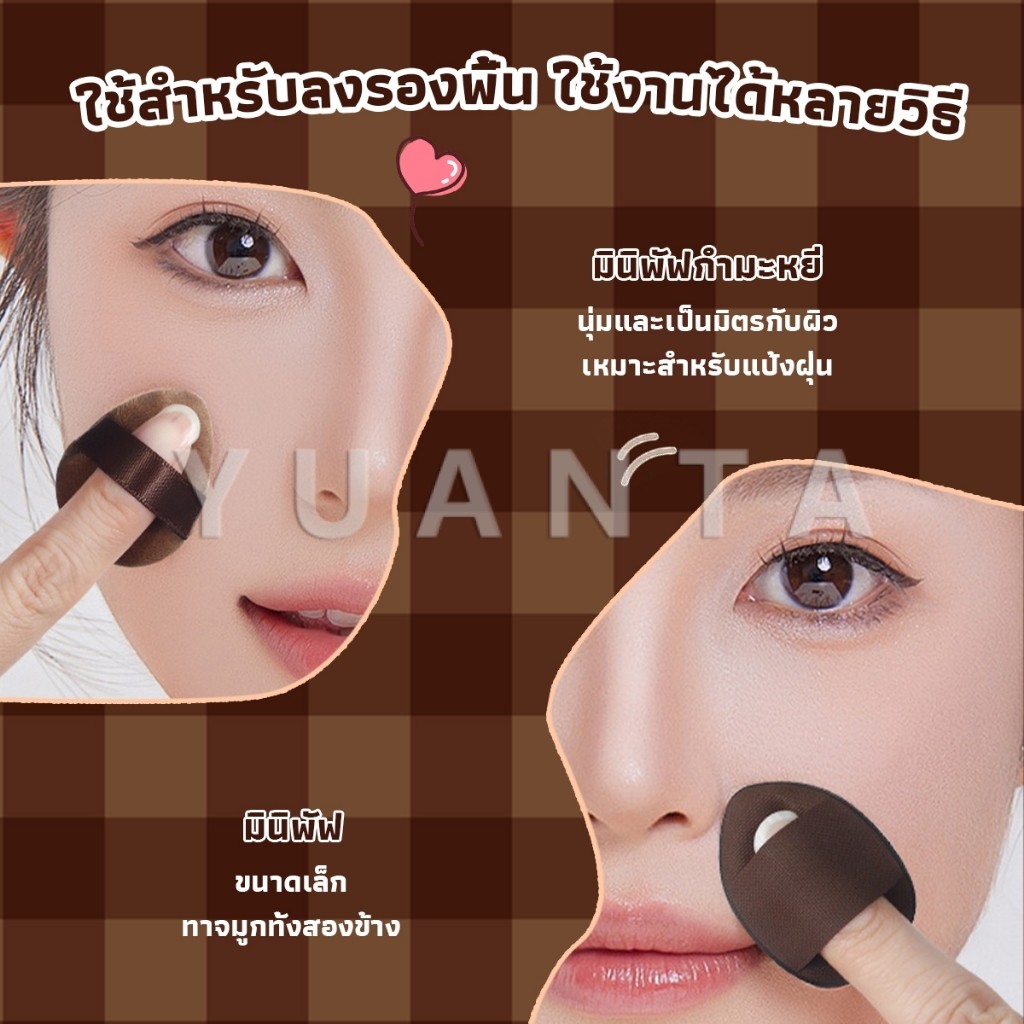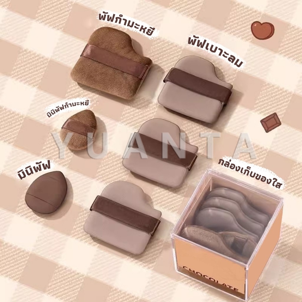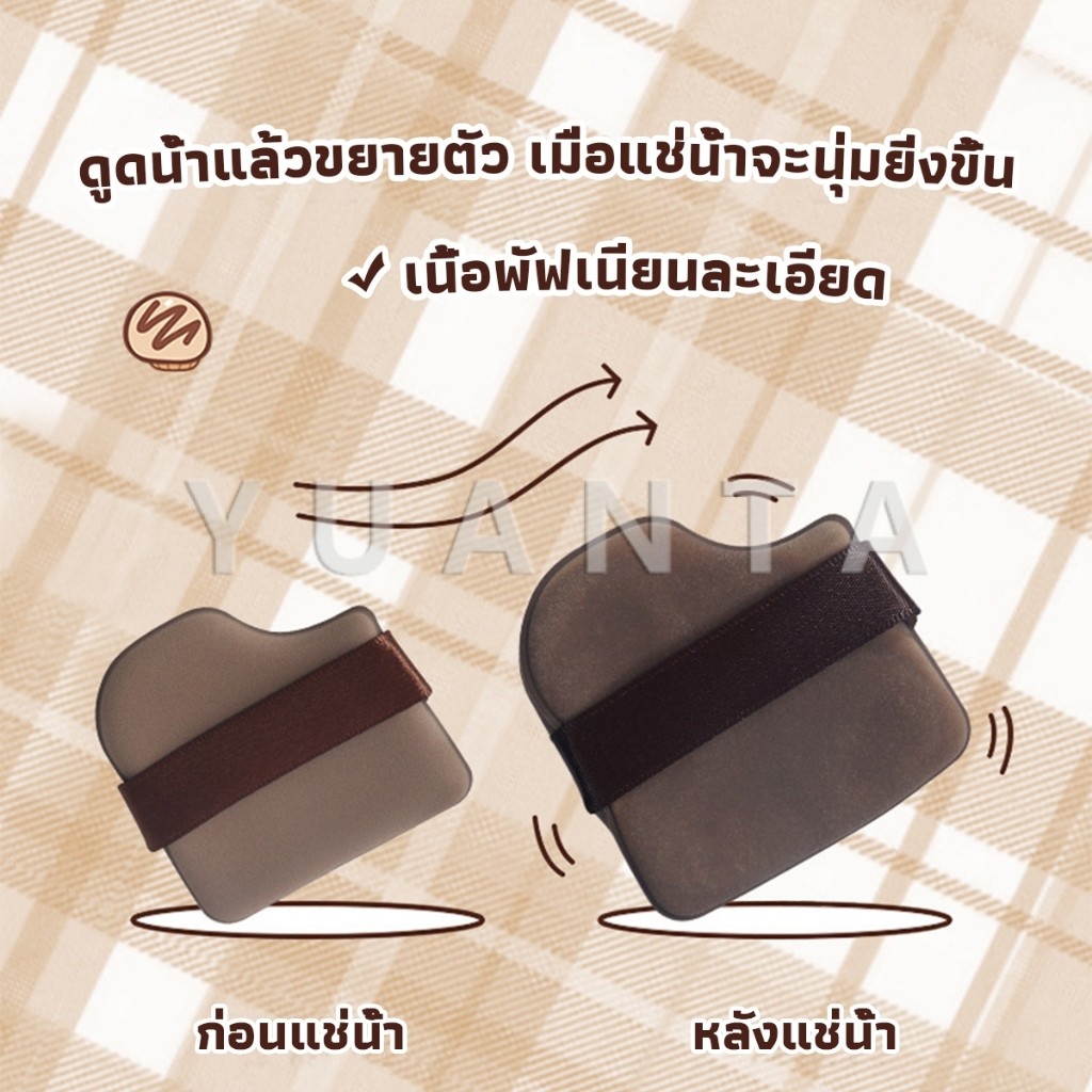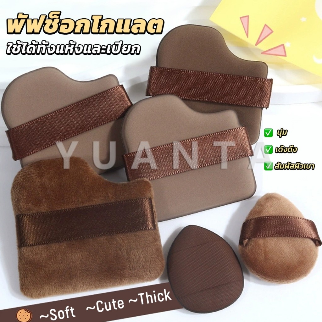 Yuanta พัฟช็อกโกแลต 6 ชิ้น พัฟกำมะหยี่ ไม่กินแป้ง พัฟขนาดมินิ ดูดน้ำแล้วขยายตัว Powder puff