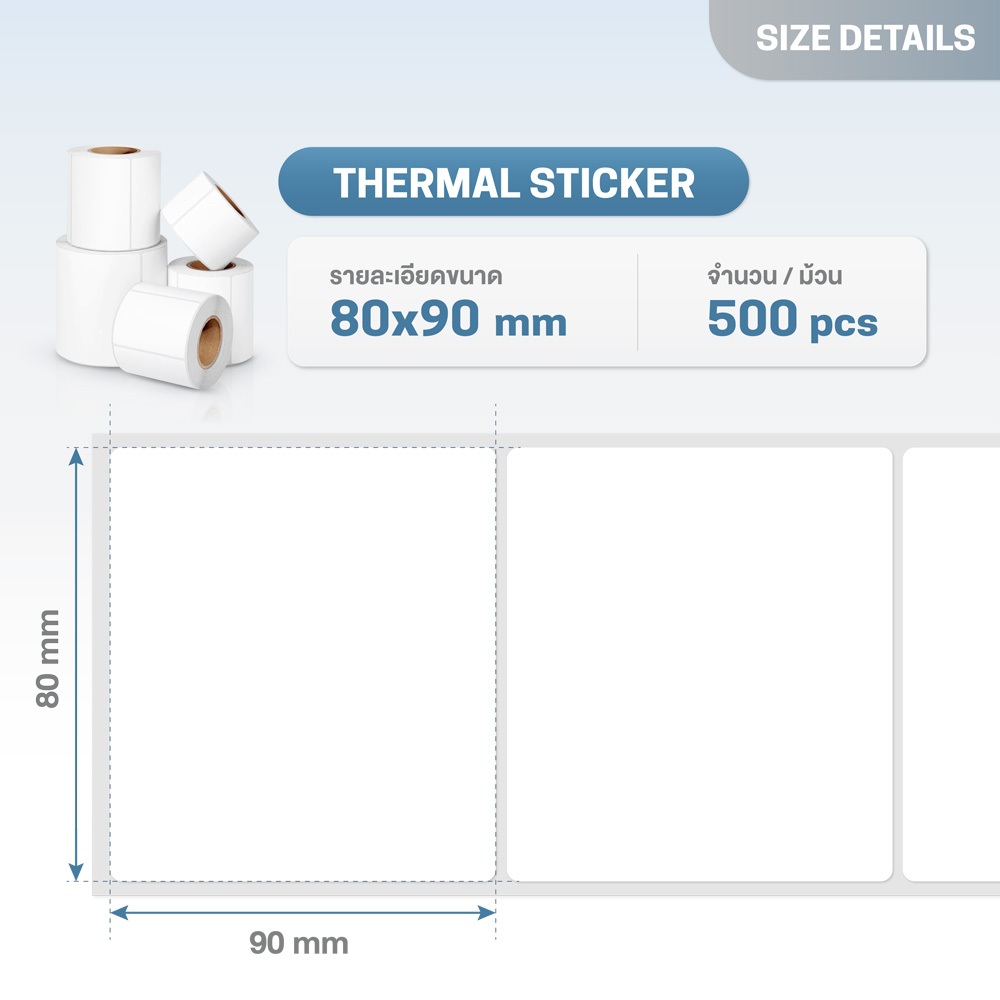 - 80x90 mm. จำนวน 500แผ่น/ม้วน