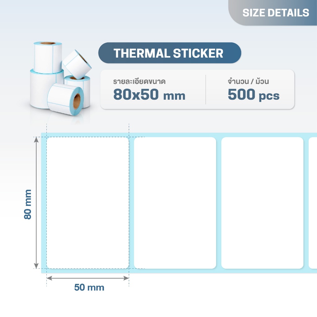 - 80x50 mm. จำนวน 500แผ่น/ม้วน