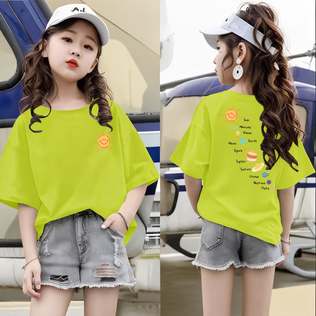 PlayTee เสื้อเด็ก เด็กผู้หญิง คอกลม เสื้อยืด cotton เสื้อผ้าเด็ก t shirt เหมาะกับฤดูร้อน สไตล์เกาหลี โคตรนุ่ม ‘SUN’