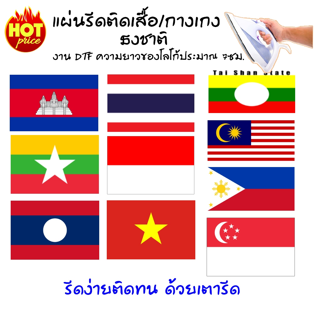 แผ่นรีดDTF ธงชาติไทย AEC ตัวรีดติดเสื้อ ติดกางเกง ลายธงชาติ แผ่นรีดติดวัสดุ วัสดุDIY รีดง่ายติดทนนาน แผ่นรีดติดวัสดุ