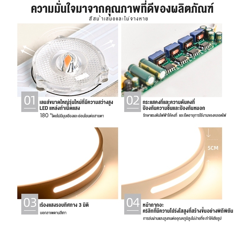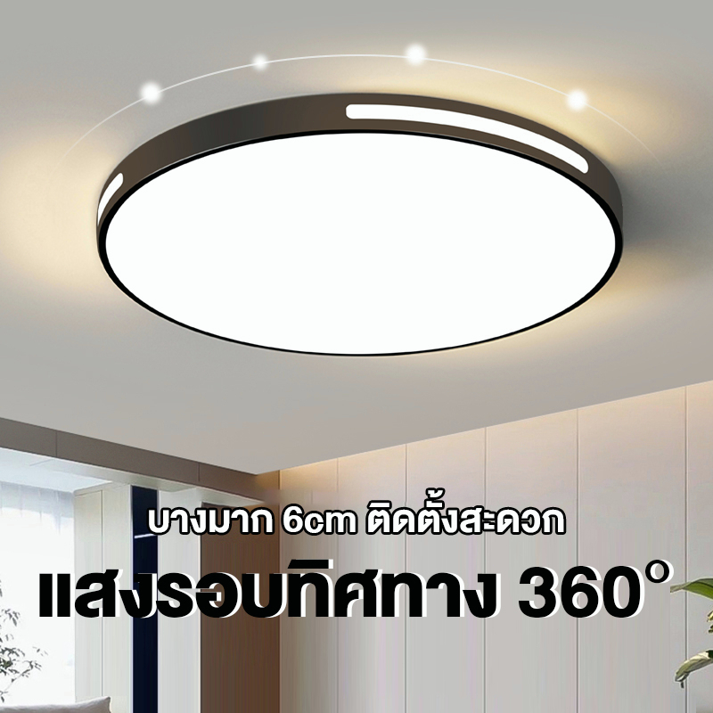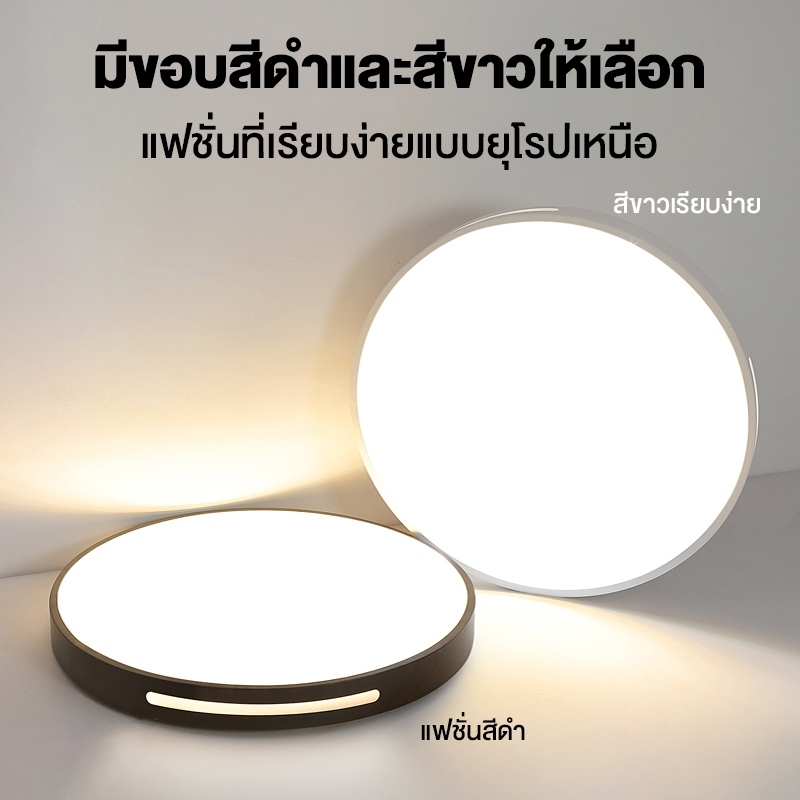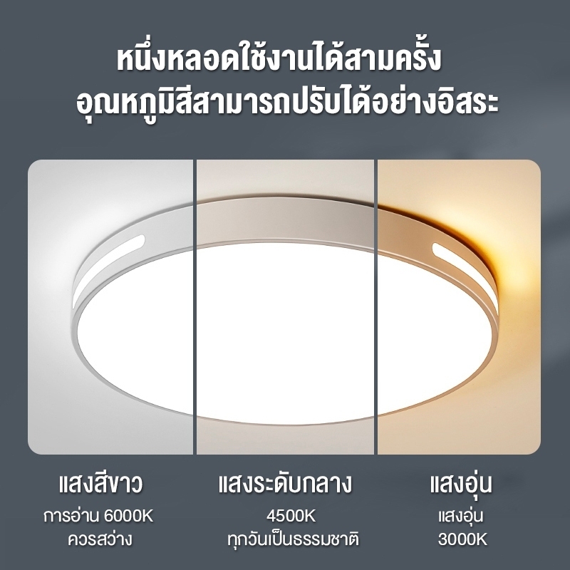 โคมไฟเพดาน ไฟ led เพดาน ง่าย โคมไฟติดเพดานทรงกลม 18W/24W/36W ปรับได้สามแสง มีให้สําหรับ ห้องนอน ห้องนั่งเล่น