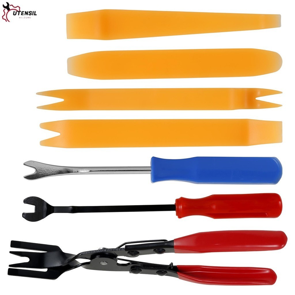7 ชิ้น Auto Fastener Remover เหล็กคลิปคีมชุดอเนกประสงค์รถ Trim Rivet Removal Pry รถคลิปคีมเครื่องมือแผงคลิปคีม