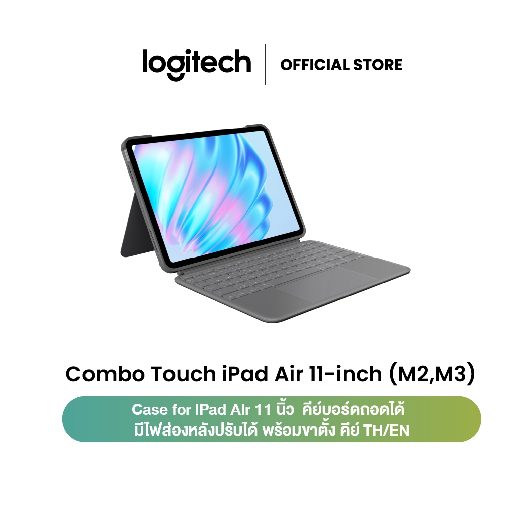 Logitech ComboTouchCase for iPadAir 11-inch (M2,M3)(5th Gen) เคสไอแพด คีย์บอร์ดถอดได้ ไฟส่องหลังพร้อมขาตั้ง TH/EN