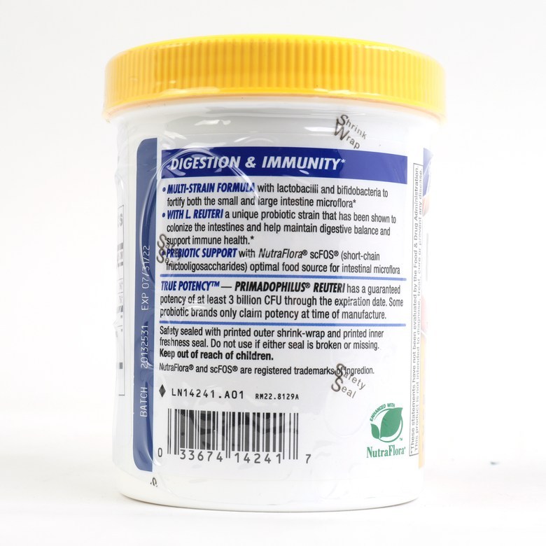 Way Primadophilus Reuteri Superior Probiotic Powder ของธรรมชาติเป็นผลิตภัณฑ์เสริมอาหารที่ออกแบบมาเพื่อสนับสนุนสุขภาพทางเดินอาหาร สูตรแป้งนี้