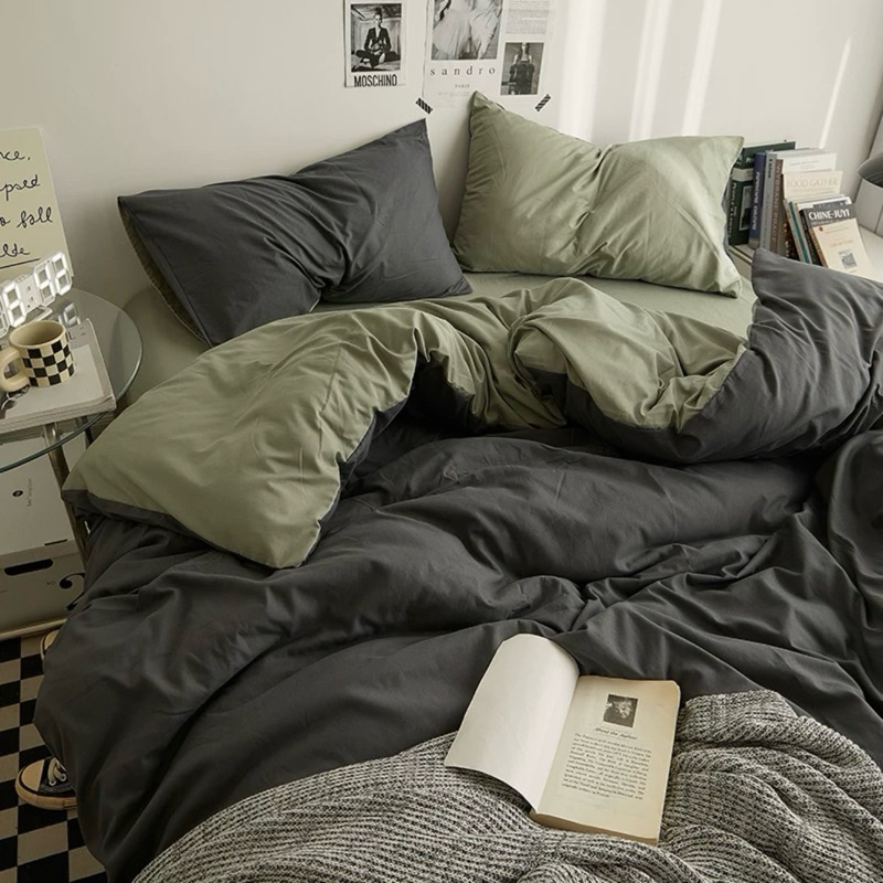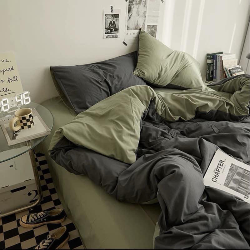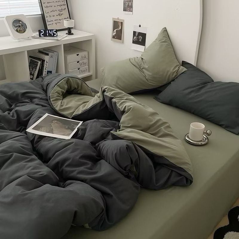ZENTIA ชุดผ้าปู + ผ้านวม ผ้าแพรสีพื้นทูโทน กันไรฝุ่นขนสัตว์ ทอแน่น นุ่มลื่นเย็นสบาย | 6 ชิ้น [PJ]