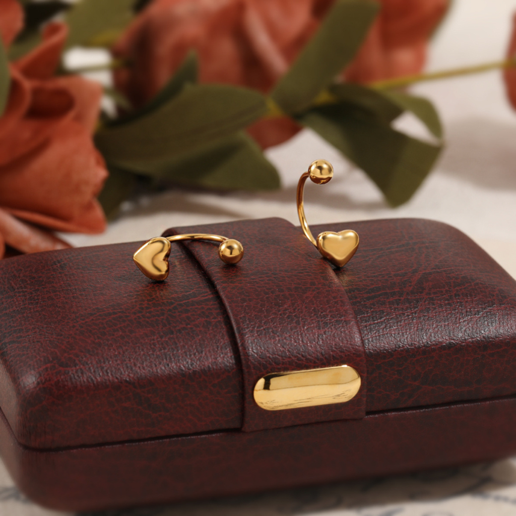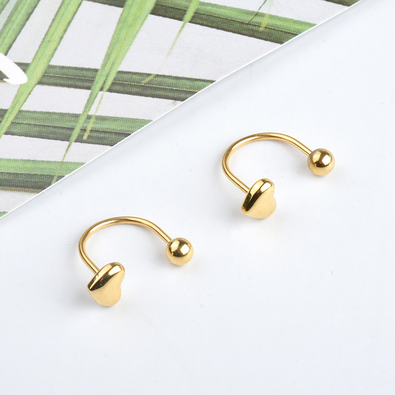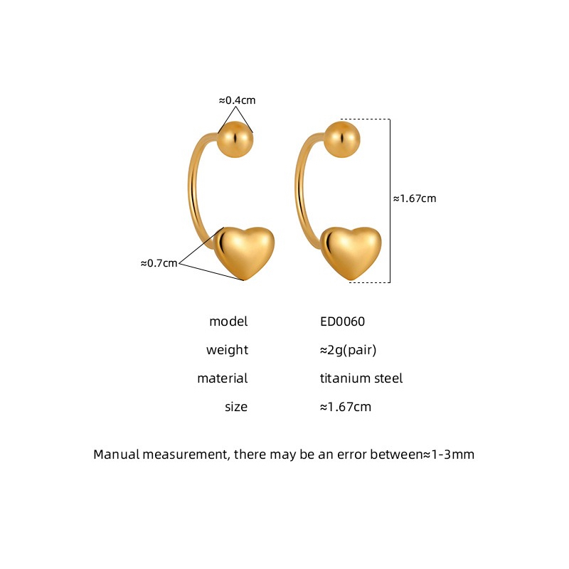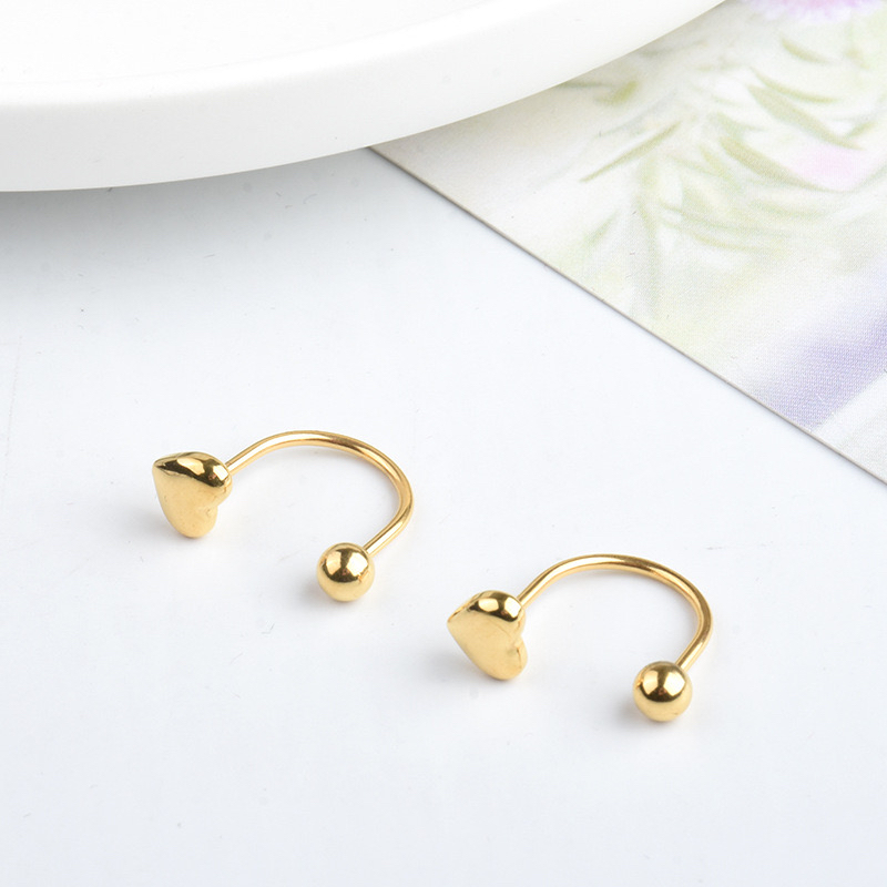 สไตล์ญี่ปุ่นเกาหลีที่ไม่ซ้ํากัน Niche Simple U-Shaped หัวใจขนาดเล็ก 18K Gold ต่างหูเหล็กไทเทเนียมหู Studs