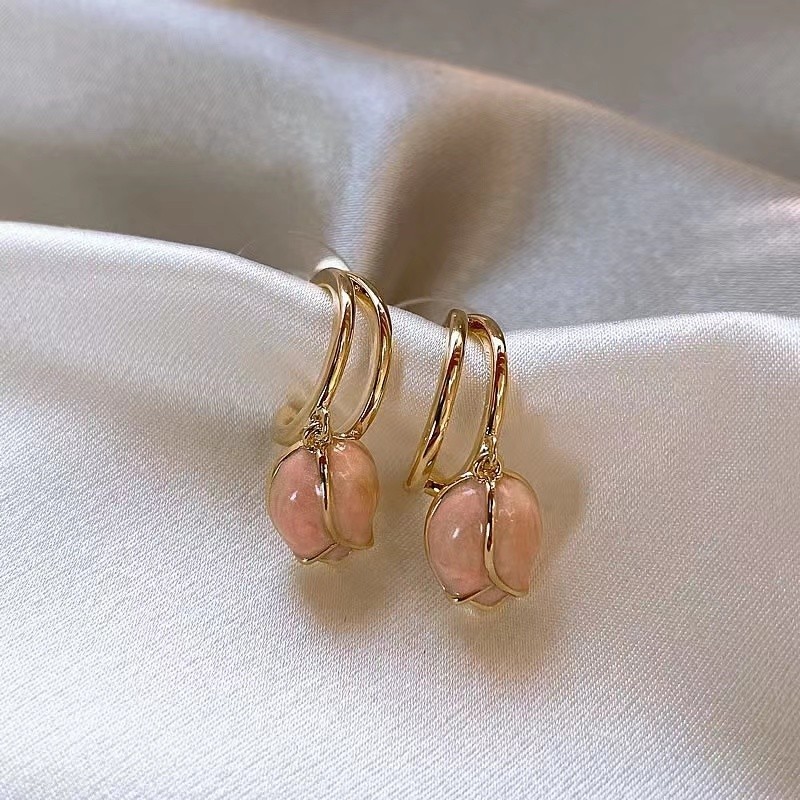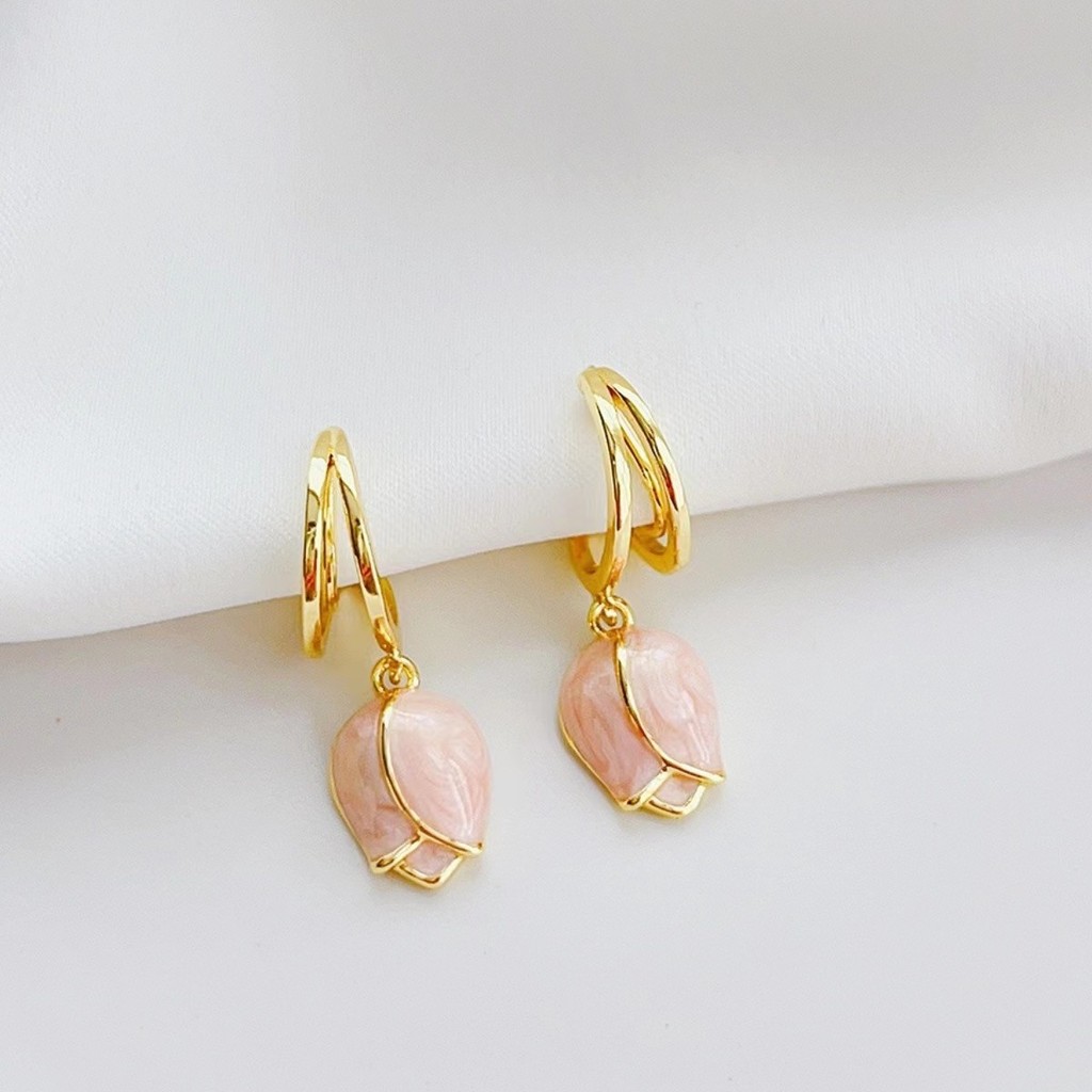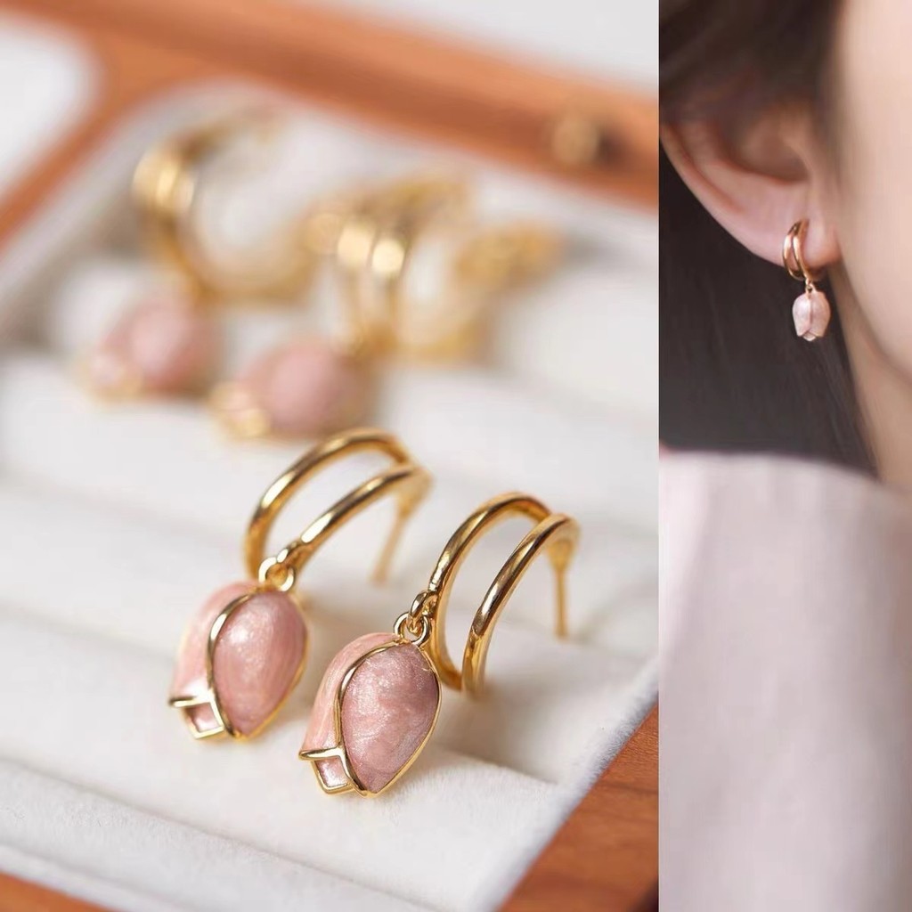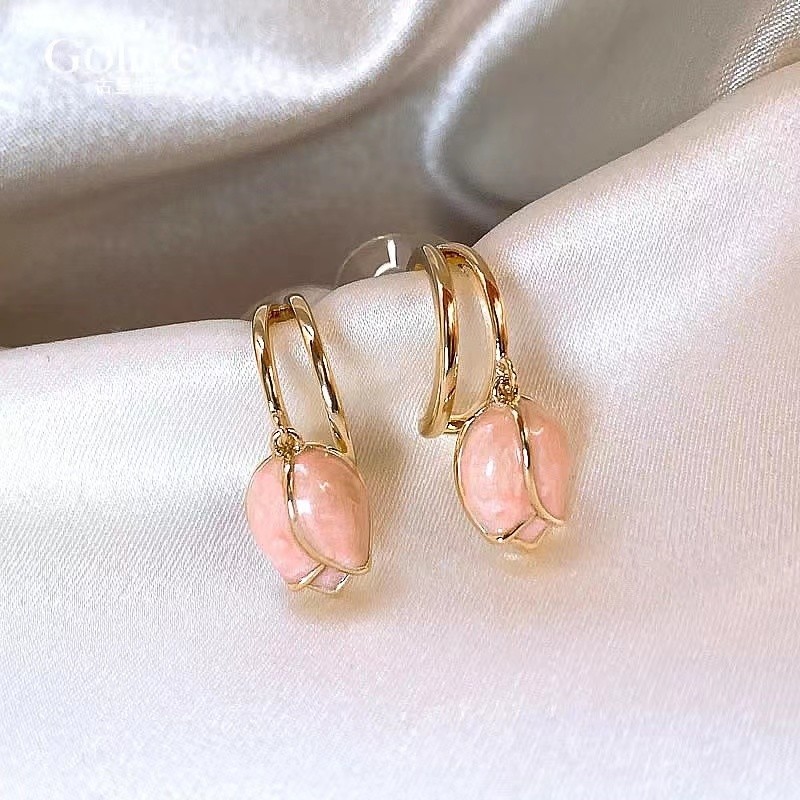 สไตล์ญี่ปุ่นเกาหลีที่ไม่ซ้ํากัน Niche Simple U-Shaped หัวใจขนาดเล็ก 18K Gold ต่างหูเหล็กไทเทเนียมหู Studs