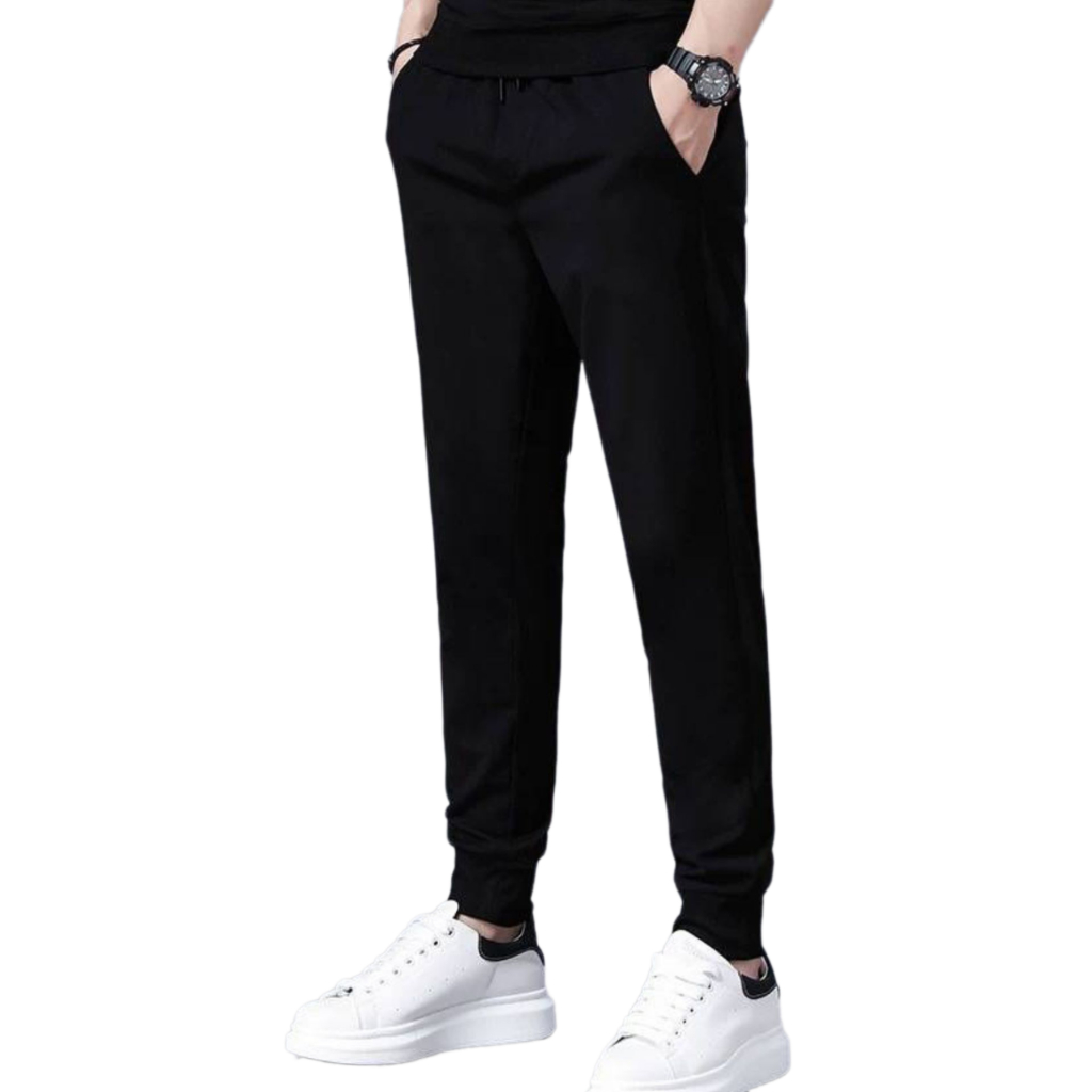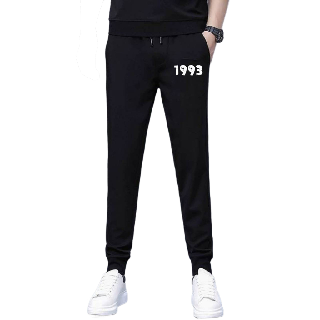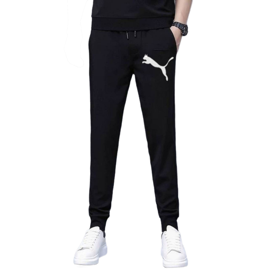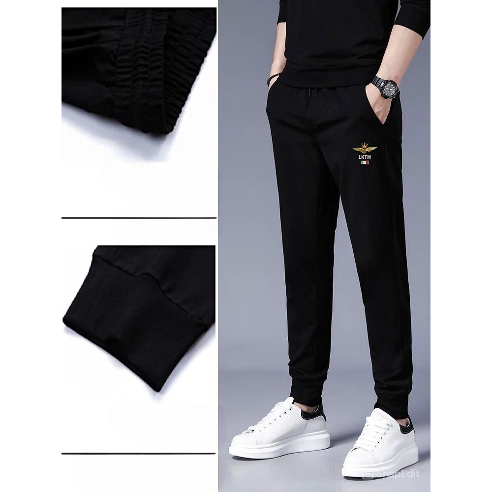 กางเกงขายาวสีดำ กางเกงวอร์มออกกำลังกาย ลายสกรีน ไซส์ M-3XL ขาจั้ม เอวยางยืด มีกระเป๋าข้าง พร้อมส่ง