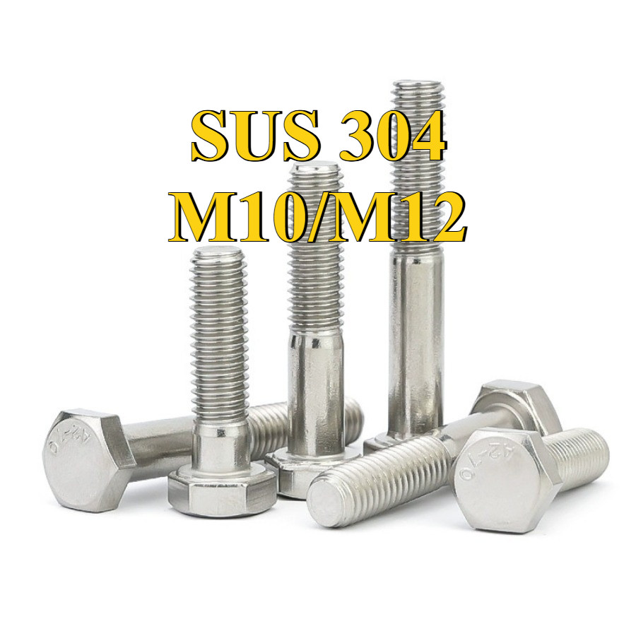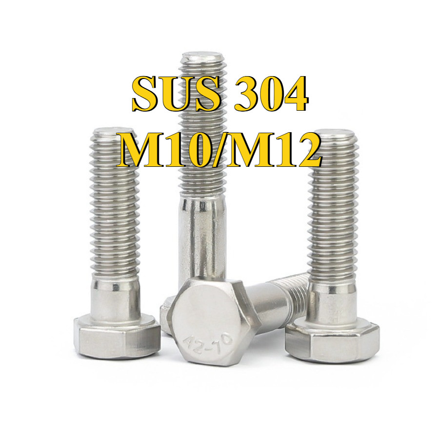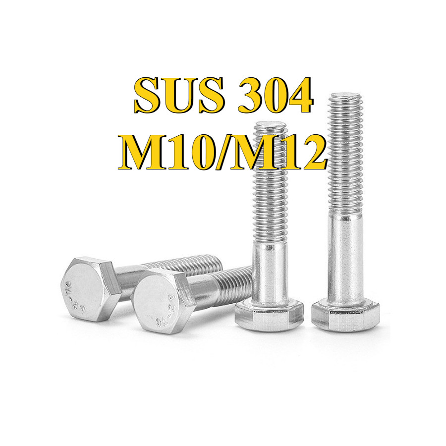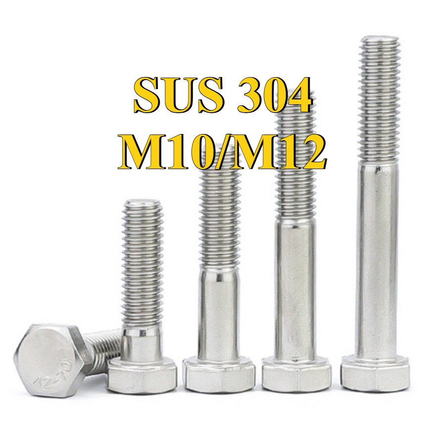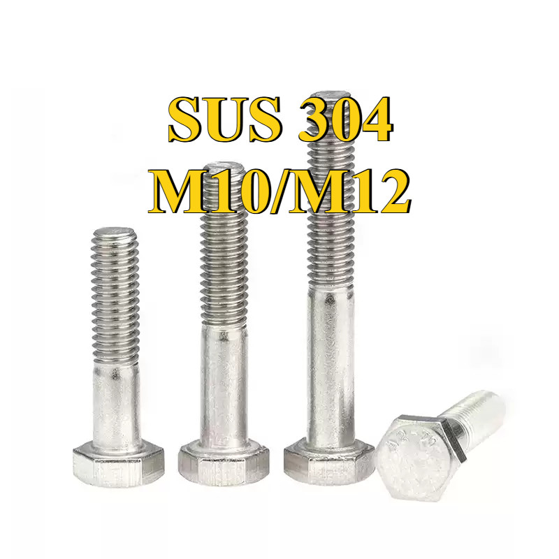 [การจัดส่งพร้อมท์]สกรูหัวหกเหลี่ยม น็อตสกรูหัวหกเหลี่ยม น็อต สกรู หัว 6 เหลี่ยม โบลท์ สแตนเลส 304 เธรดครึ่ง / Hexagon Head Screw/ Bolt half threaded M10/M12*L35-300mm【ZQ-MB-1】