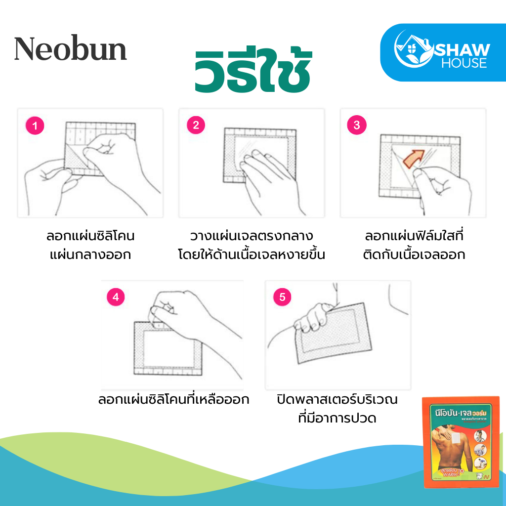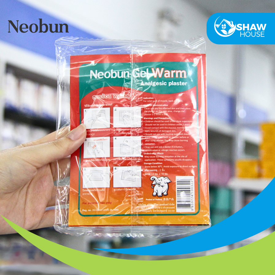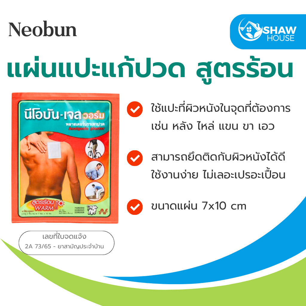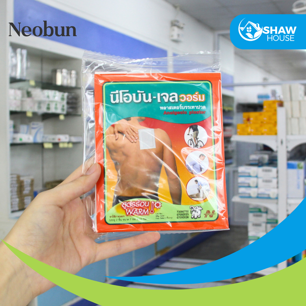 Neobun Gel Warm 7x10cm (2 แผ่น) นีโอบัน-เจล แผ่นแปะแก้ปวด สูตรร้อน
