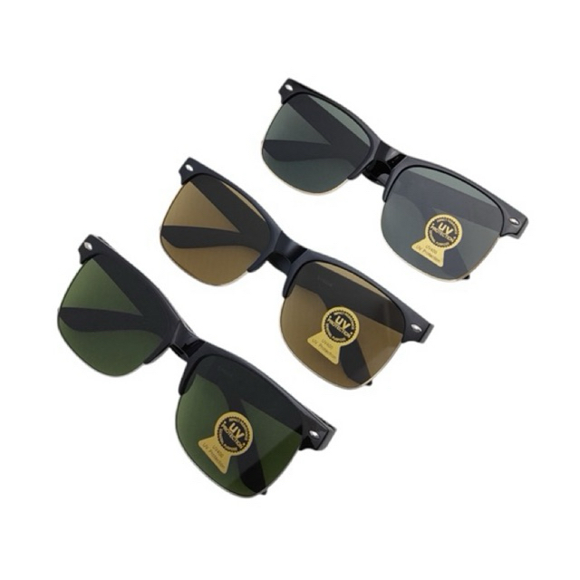 แว่นตากันแดด เลนส์กระจกแท้ ป้องกันรังสีUV400 แถมฟรีซอง+ผ้าเช็ด กรอบคานเหล็ก ขายดี