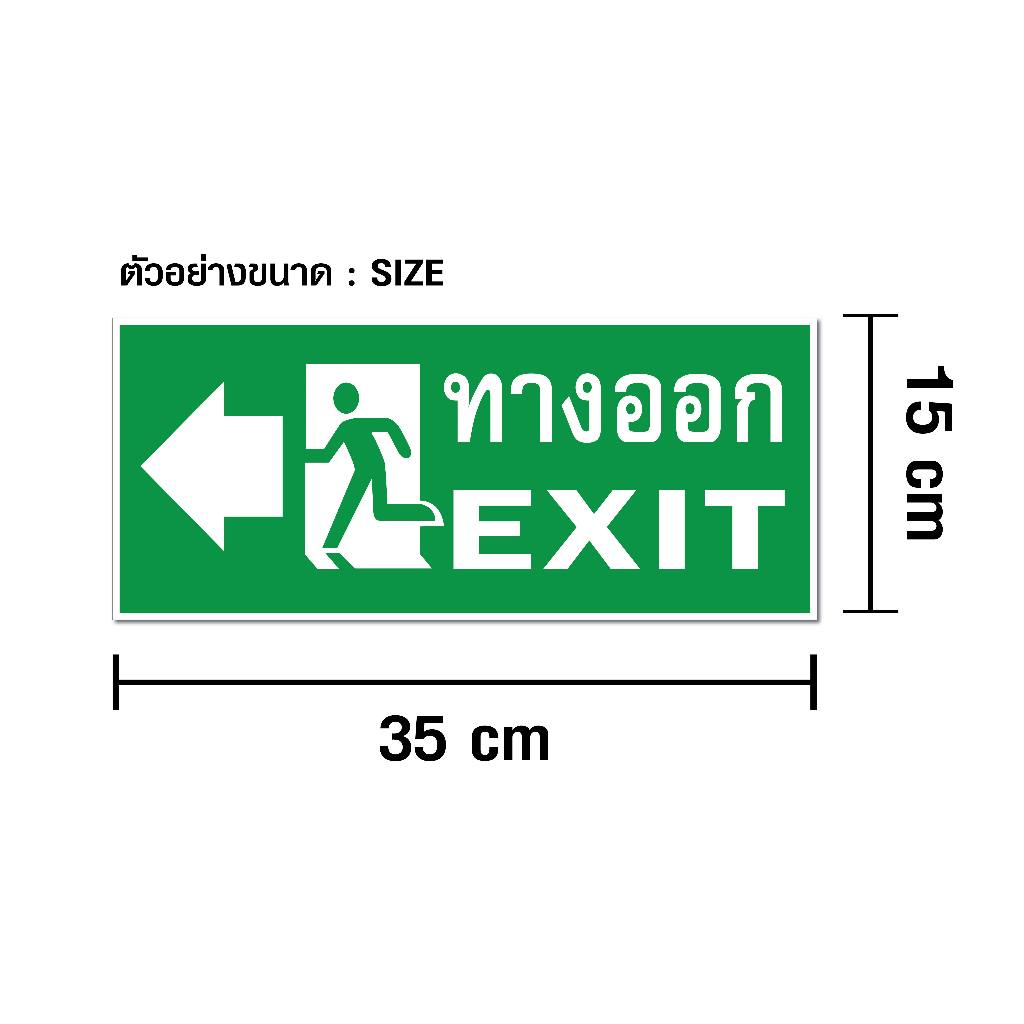 SS019 – ป้ายทางออก EXIT ขนาด 15 x 35 cm. – วัสดุ สติ๊กเกอร์ / ฟิวเจอร์บอร์ด / พลาสวูด