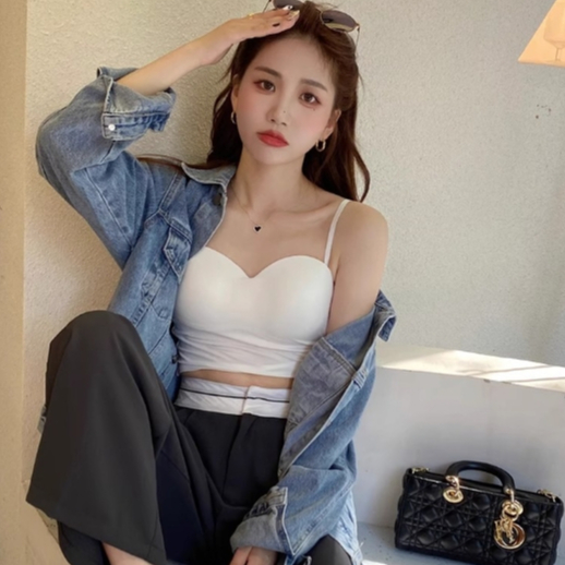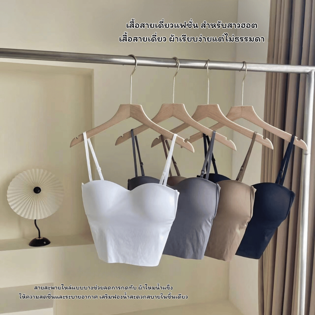 เสื้อสายเดี่ยวสปอร์ตบรา ?B-137? เสื้อซับในผ้าลื่น มีฟองน้ำเสริมในตัว ทรงงสวย มีให้เลือก4สี แมทได้หลายลุค สไตล์สายฝอ?