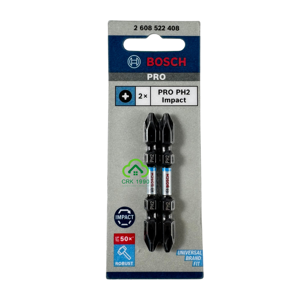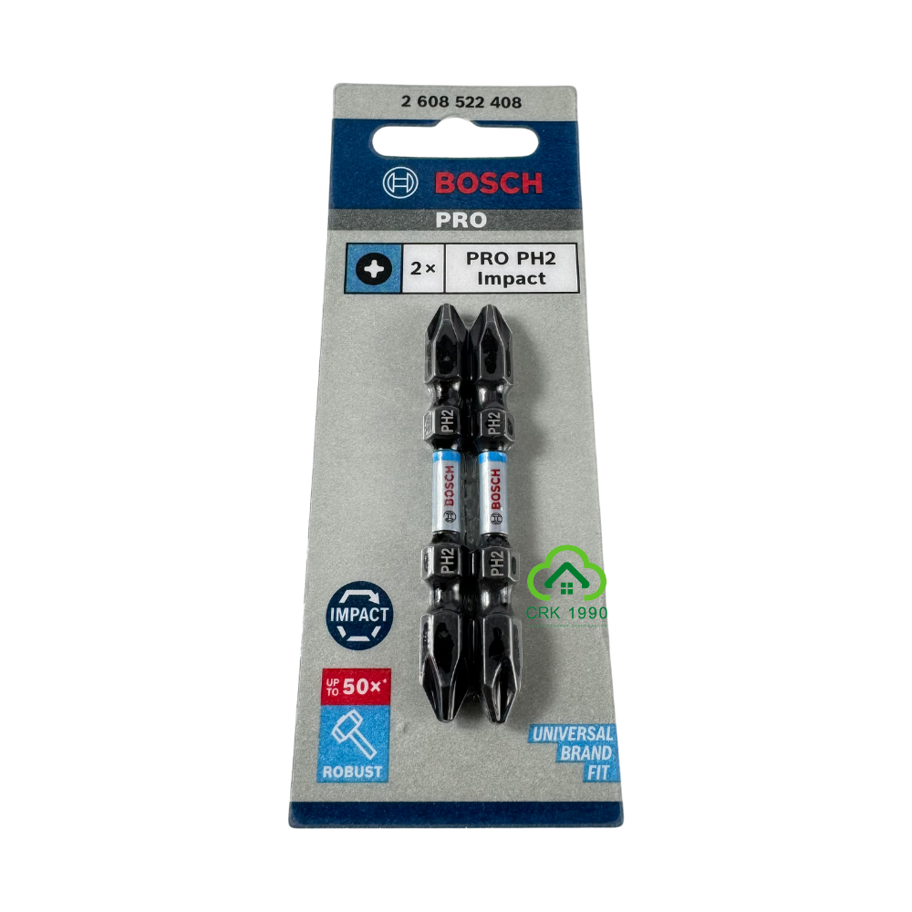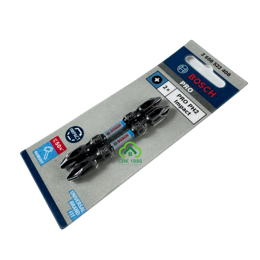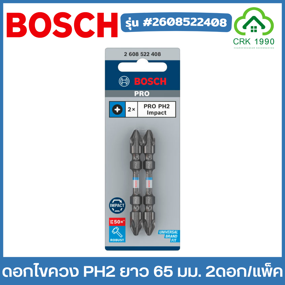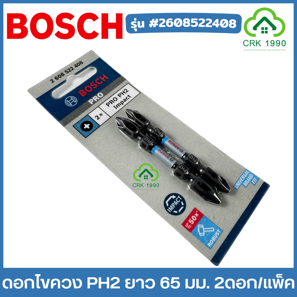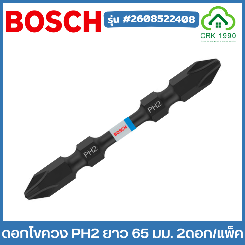 BOSCH ดอกไขควง PH2 ยาว 65 มม. ทนทานต่อการหัก ออกแบบสำหรับงานที่ใช้แรงบิดสูงๆ ปลายแม่เหล็ก (2ดอก/แพ็ค) #2608522408