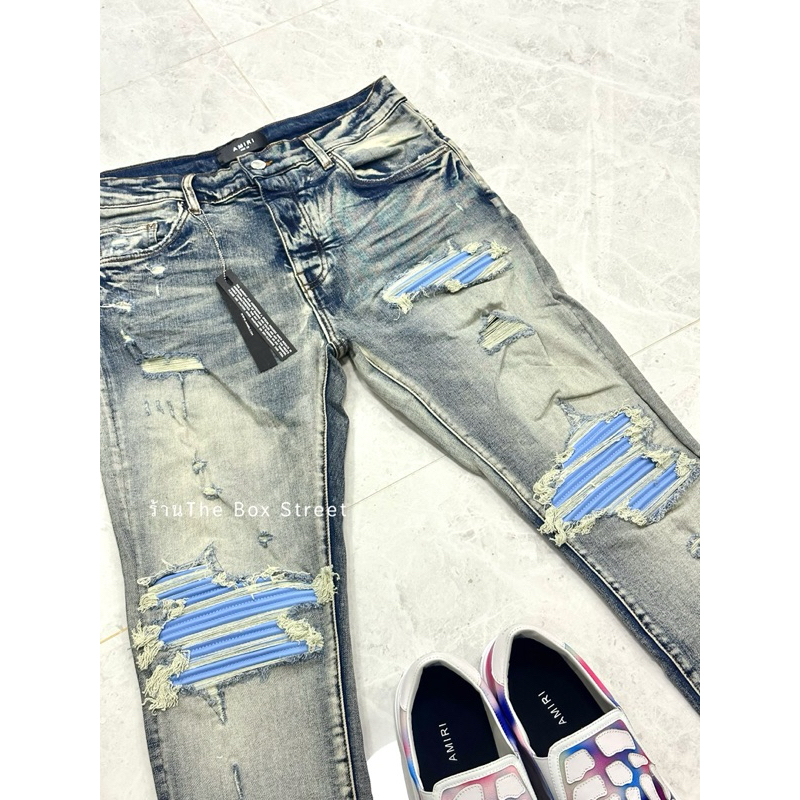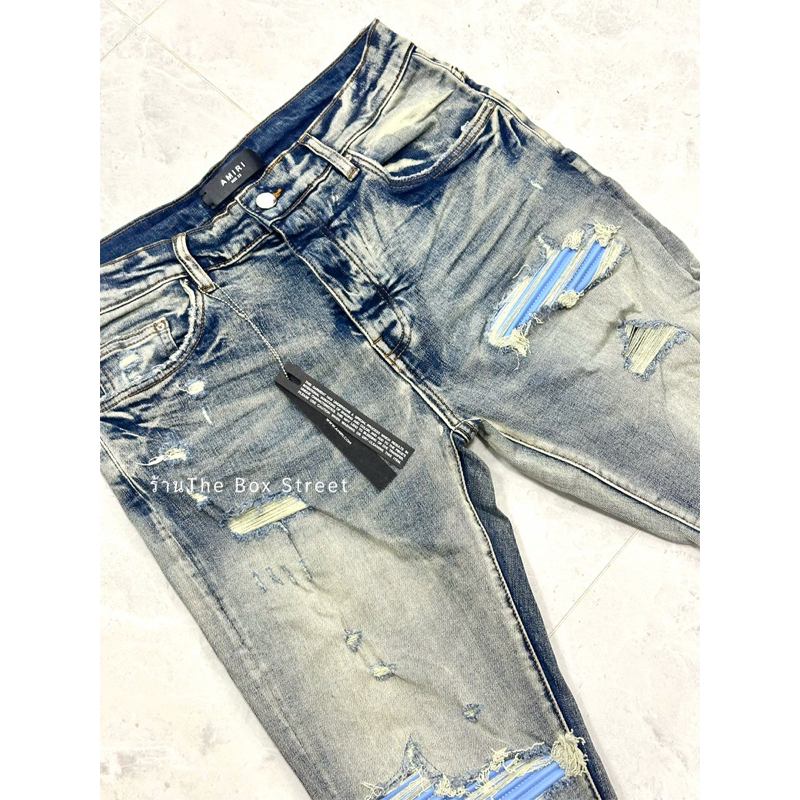 กางเกงยีนส์แต่งขาด เข่าฟ้าอ่อน V.2 ยีนส์ฟอกสว่าง ผ้ายืด2นิ้ว นุ่ม ใส่สบาย