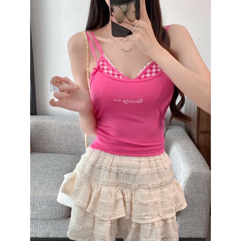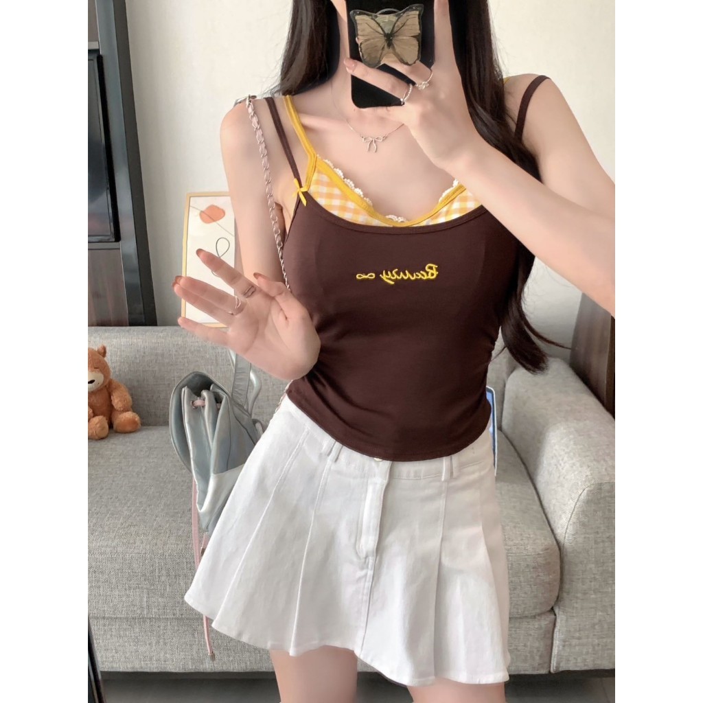 SP-6 เสื้อสายเดี่ยว เสริมฟองน้ำ เสื้อแฟชั่น หลากสี เสื้อในลายสก็อต ฟรีไซส์ ผ้ายืดมาก สินค้าพร้อมส่ง