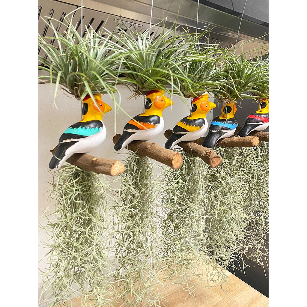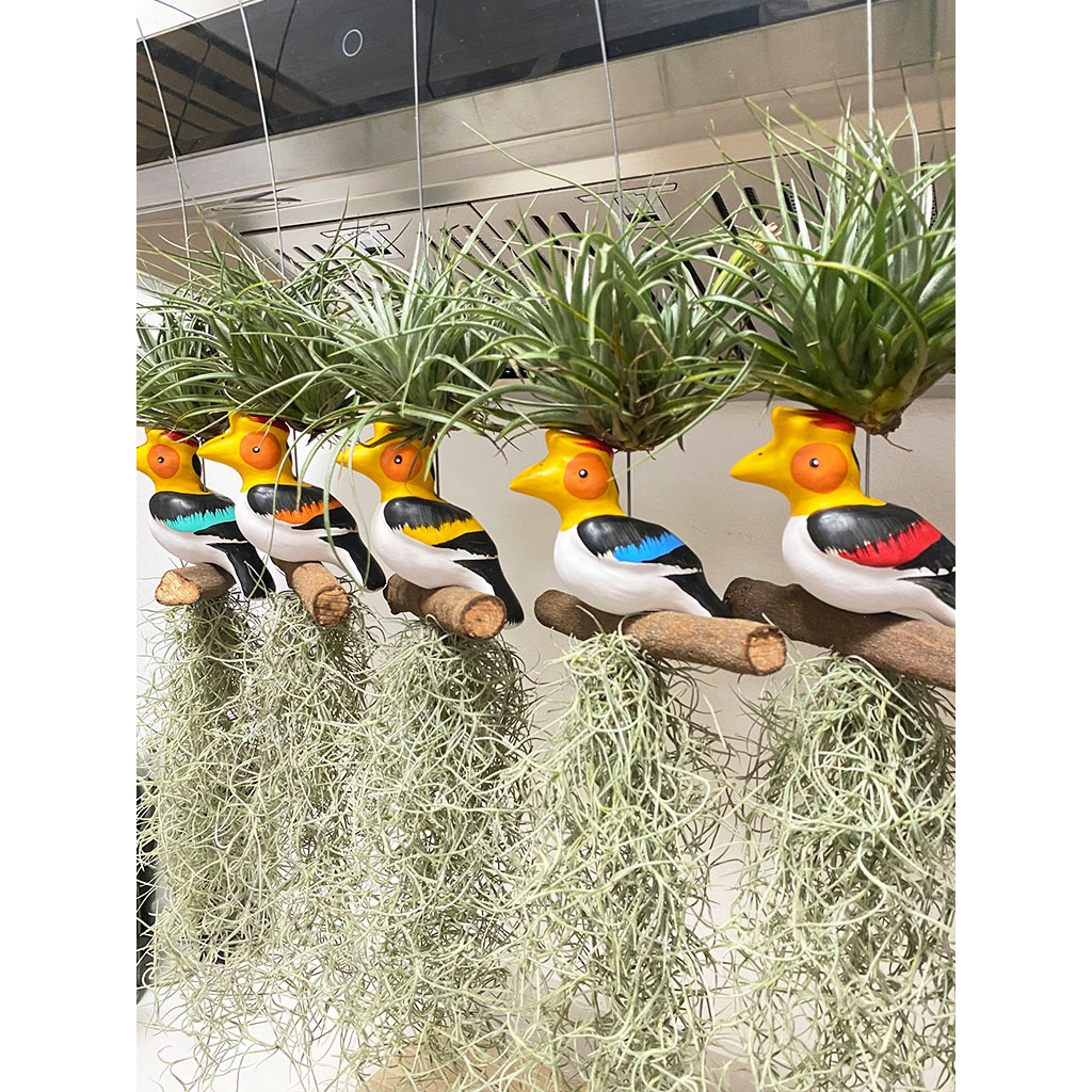 โมบายเคราฤาษีใส่นกเงือกเกาะขอนไม้และสัปปะรด