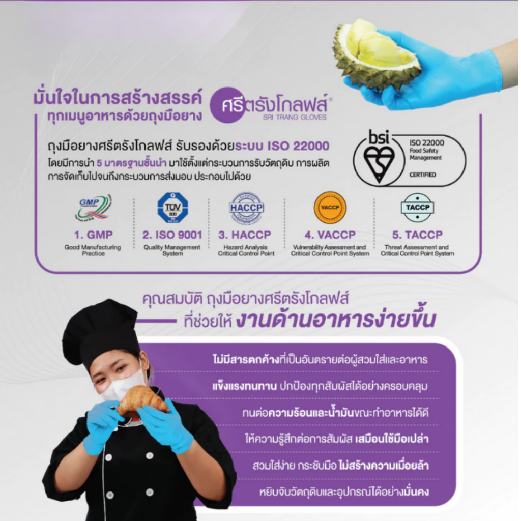 ซาโตรี่ ถุงมือยางธรรมชาติแบบมีแป้ง ชนิดนี้มีการปรับความหนาให้บางเบาสะดวกสบายช่วยให้การทำงานมีความไวต่อผิวสัมผัสได้ดี ขณะที่สามารถมั่นใจในประสิทธิภาพการปกป้องที่เชื่อถือได้