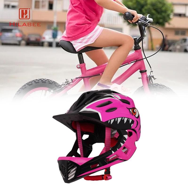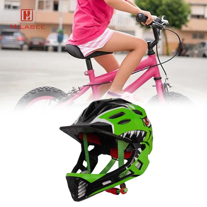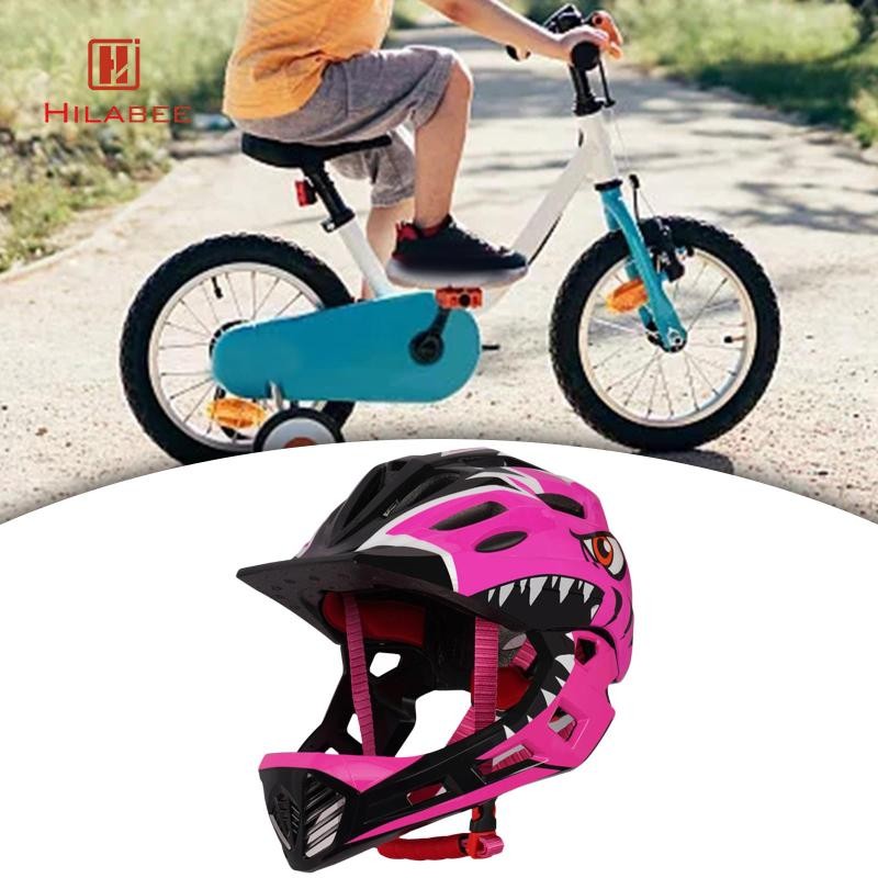 Hilabee หมวกกันน็อคจักรยานเด็กหมวกกันน็อคแบบเต็มหน้าอินเทรนด์สําหรับสเก็ตบอร์ดจักรยานวิ่งกลางแจ้ง