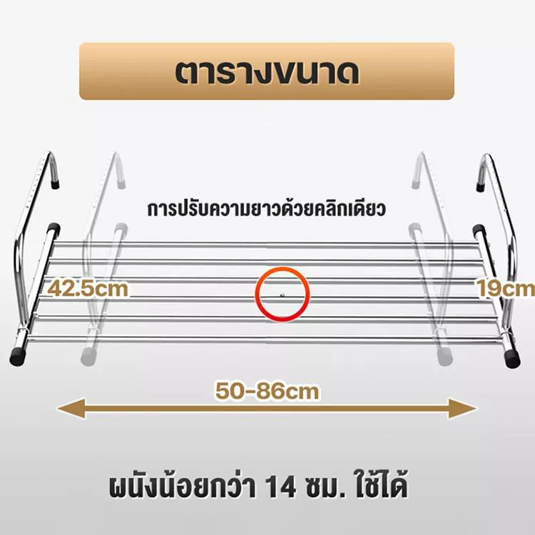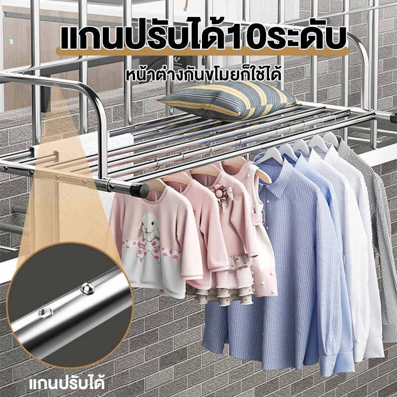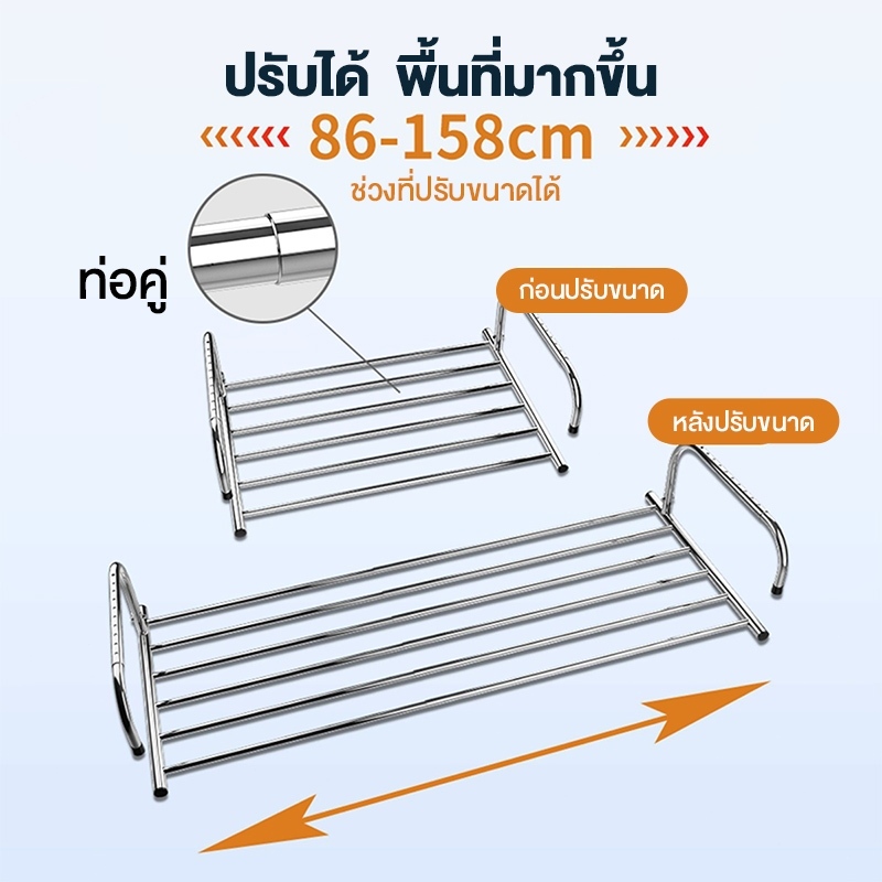 ราวตากผ้าสแตนเลส แขวนขอบระเบียงและหน้าต่าง ราวตากผ้าระเบียงคอนโด ปรับความยาวได้50-158CMแขวนขอบหน้าต่าง ราวตากผ้าระเบียง