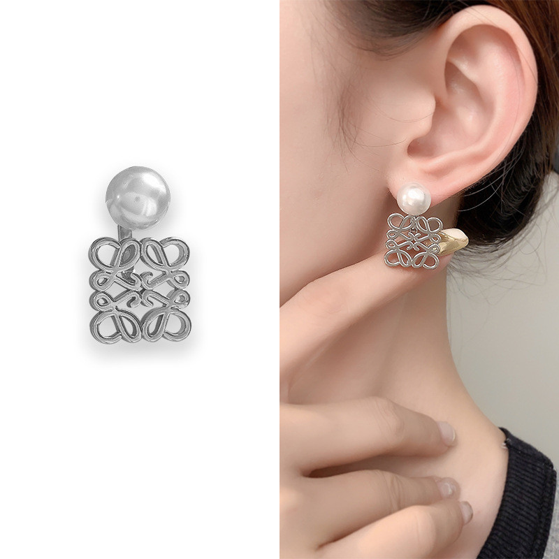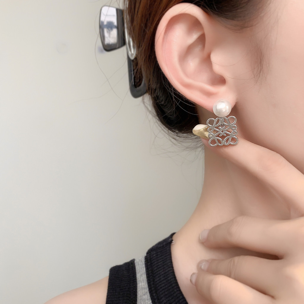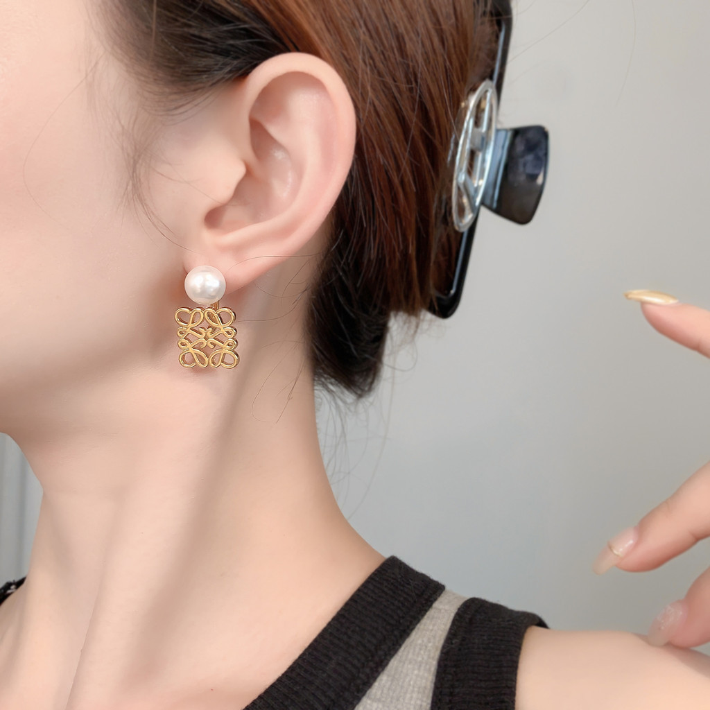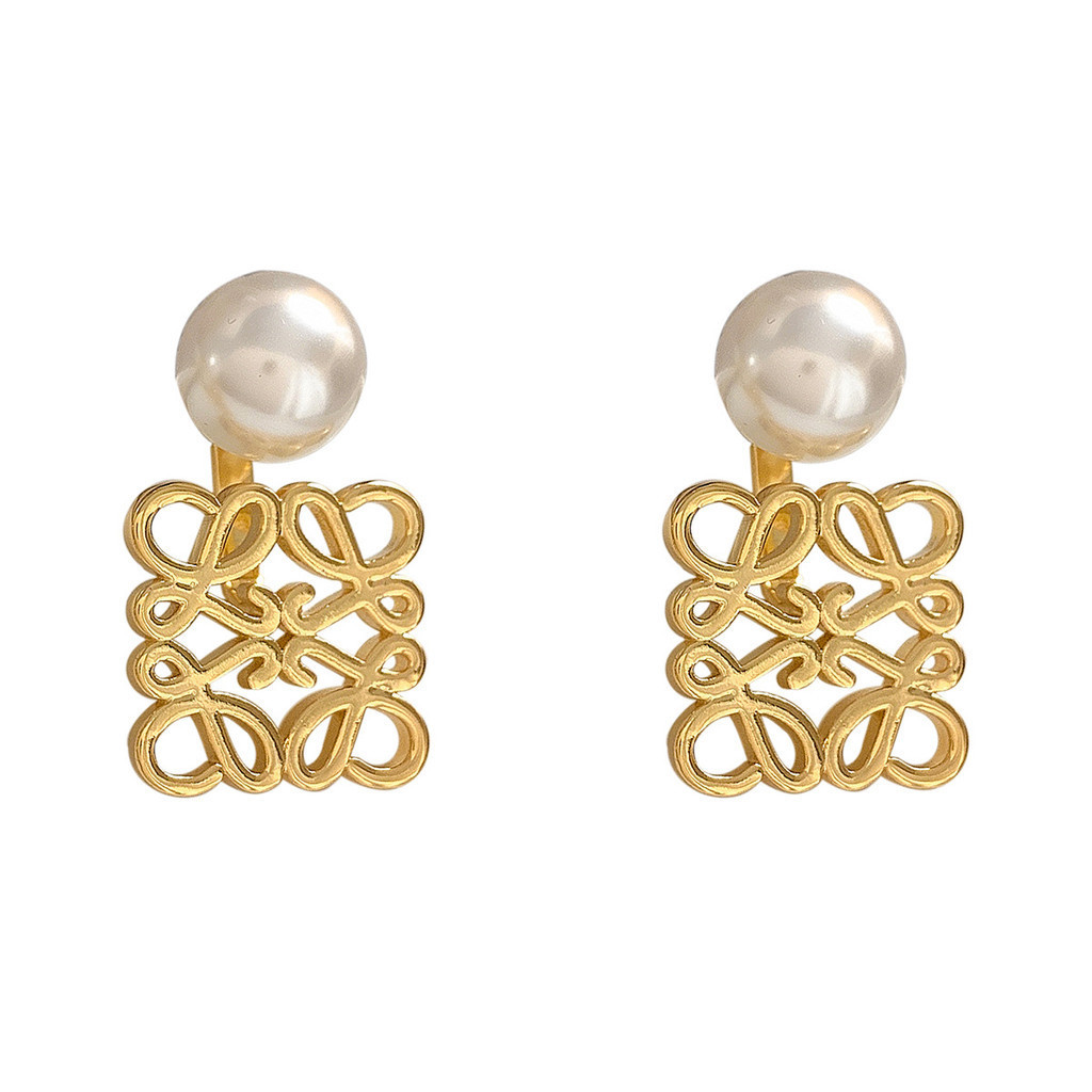 QUEENS ต่างหู ทองแดงชุบ 18เค ทองมุกแฟชั่นเกาหลีประณีต รูปสี่เหลี่ยมrทวิภาคี ต่างหูสุภาพสตรีเครื่องประดับ E066