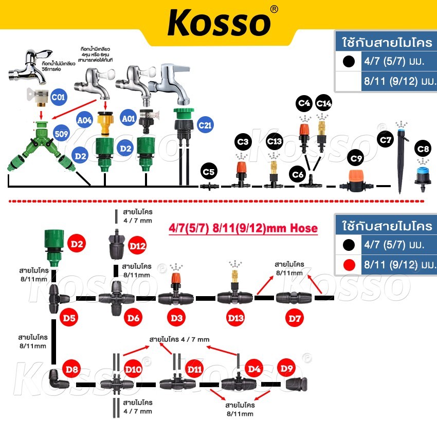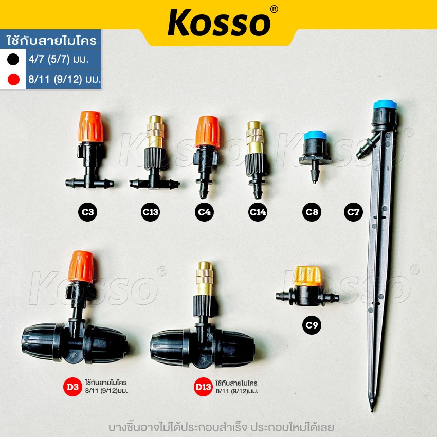 KOSSO 1ชิ้น หัวพ่นหมอก ใช้กับสายไมโครขนาด 4/7 mm ปรับละอองได้ ข้อต่อสามทาง ZC-B SA