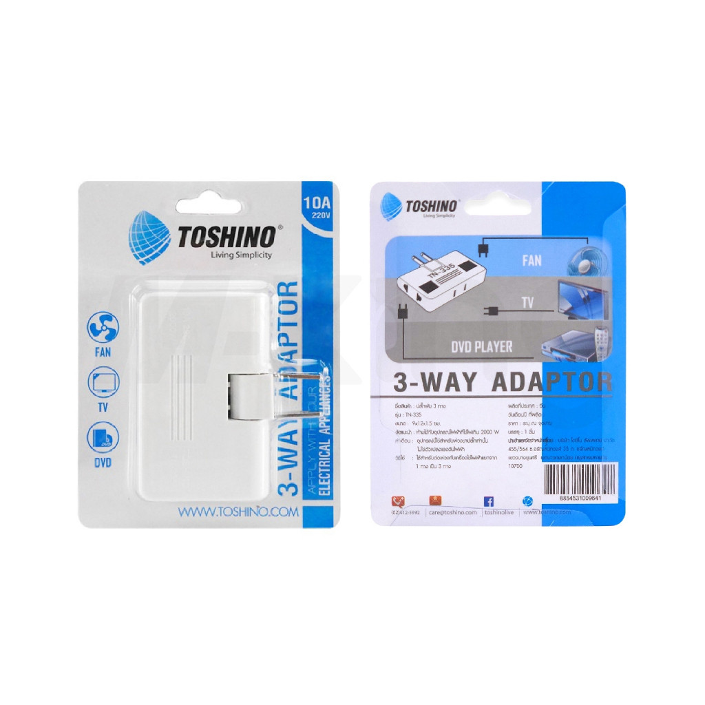 TOSHINO TN-335 ของแท้ ปลั๊กพับได้ ไฟแรง 10A 3-WAY ADAPTER ปลั๊กแปลง ปลั๊กไฟ มี ม.อ.ก