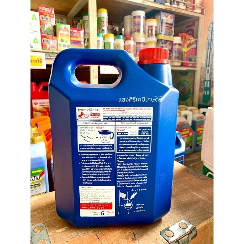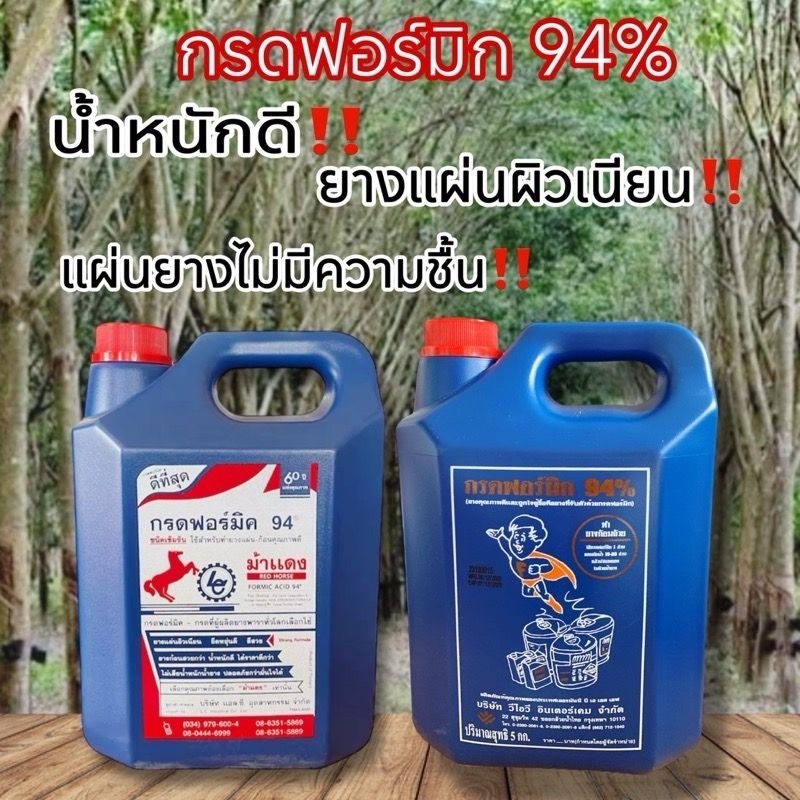 กรดฟอร์มิก 94% ตราม้าแดง ขนาดบรรจุ 5 กิโลกรัม เหมาะสำหรับทำยางก้อนถ้วยและยางแผ่น
