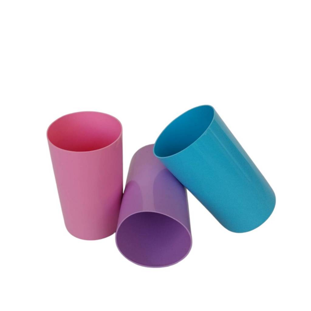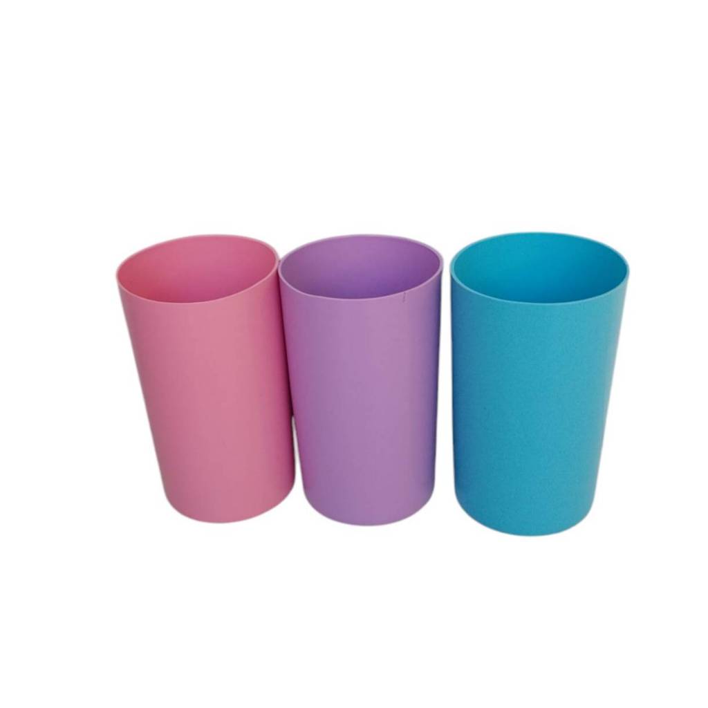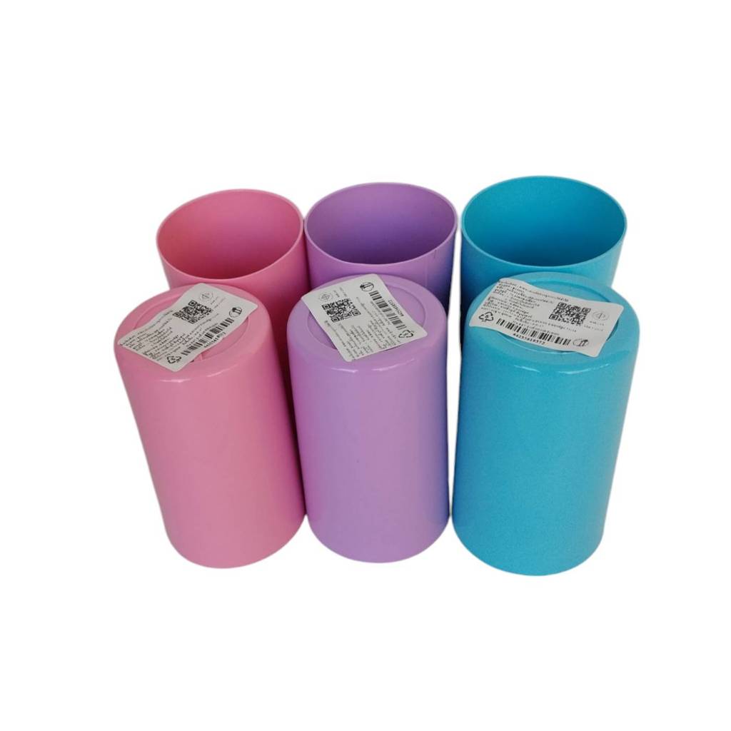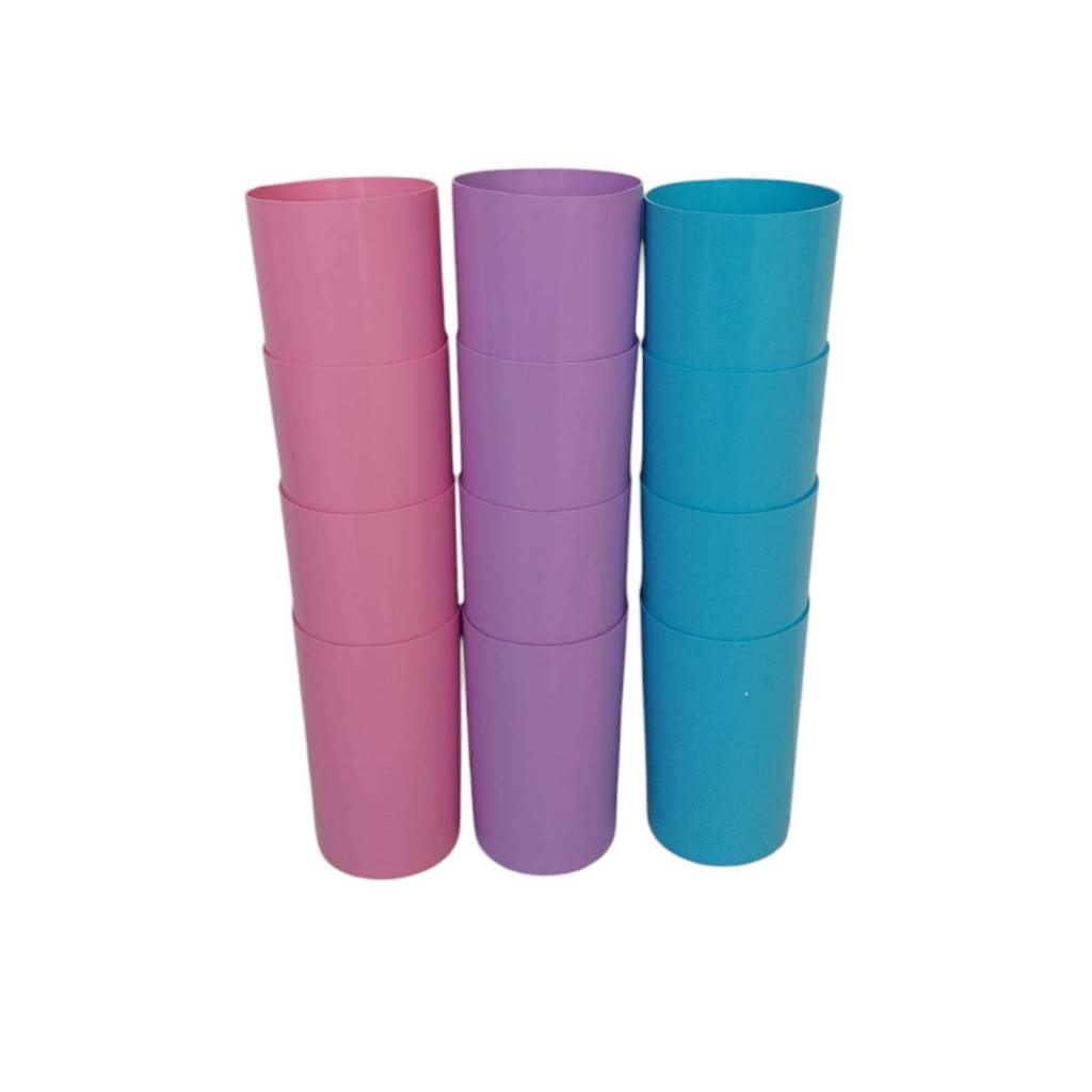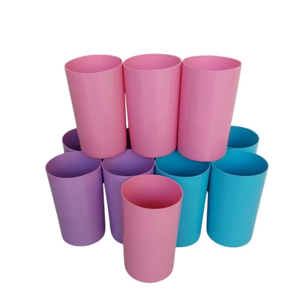 แก้วน้ำพลาสติกทรงกระบอก ขายยกโหล 12 ใบ คละสี