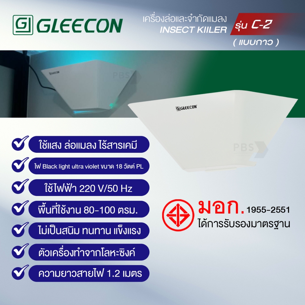 GLEECON เครื่องดักแมลงรุ่น C-2 กำจัดแมลงได้ 99.9% รับประกัน 1 ปี สินค้ามาตรฐานโรงงาน