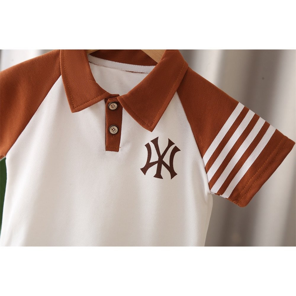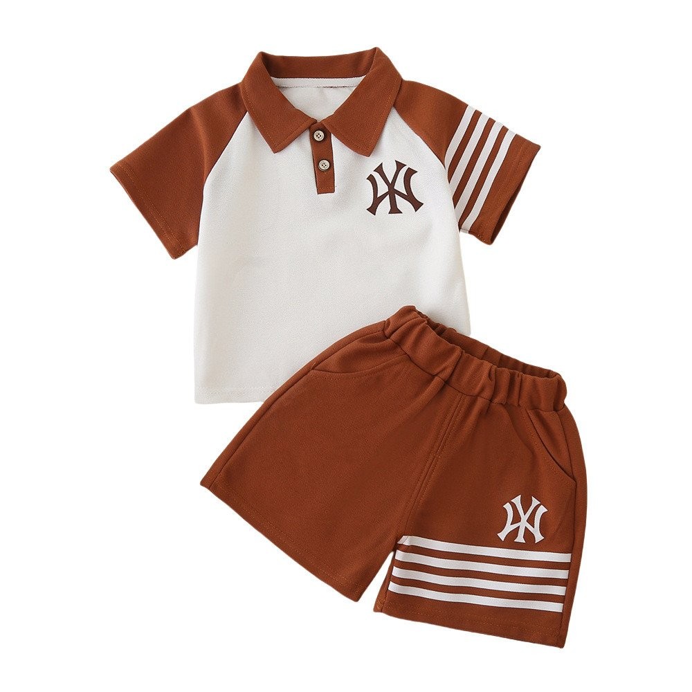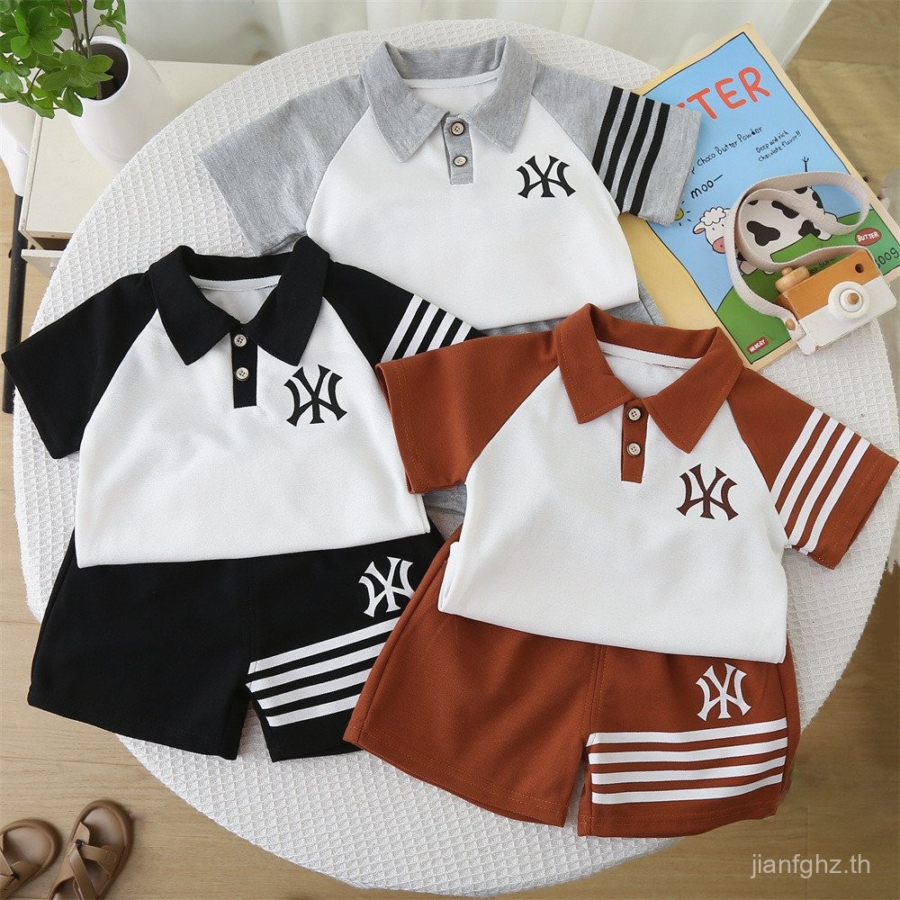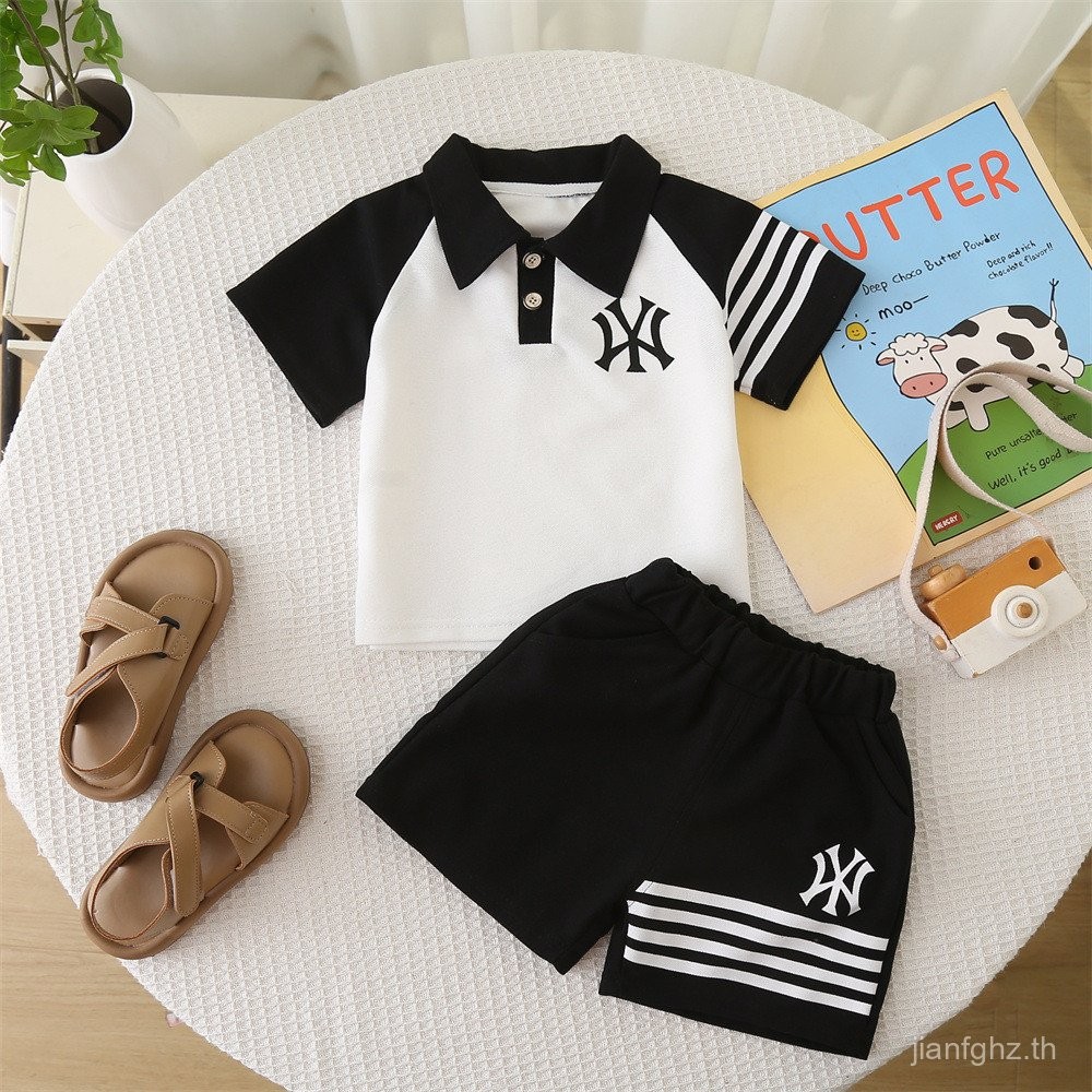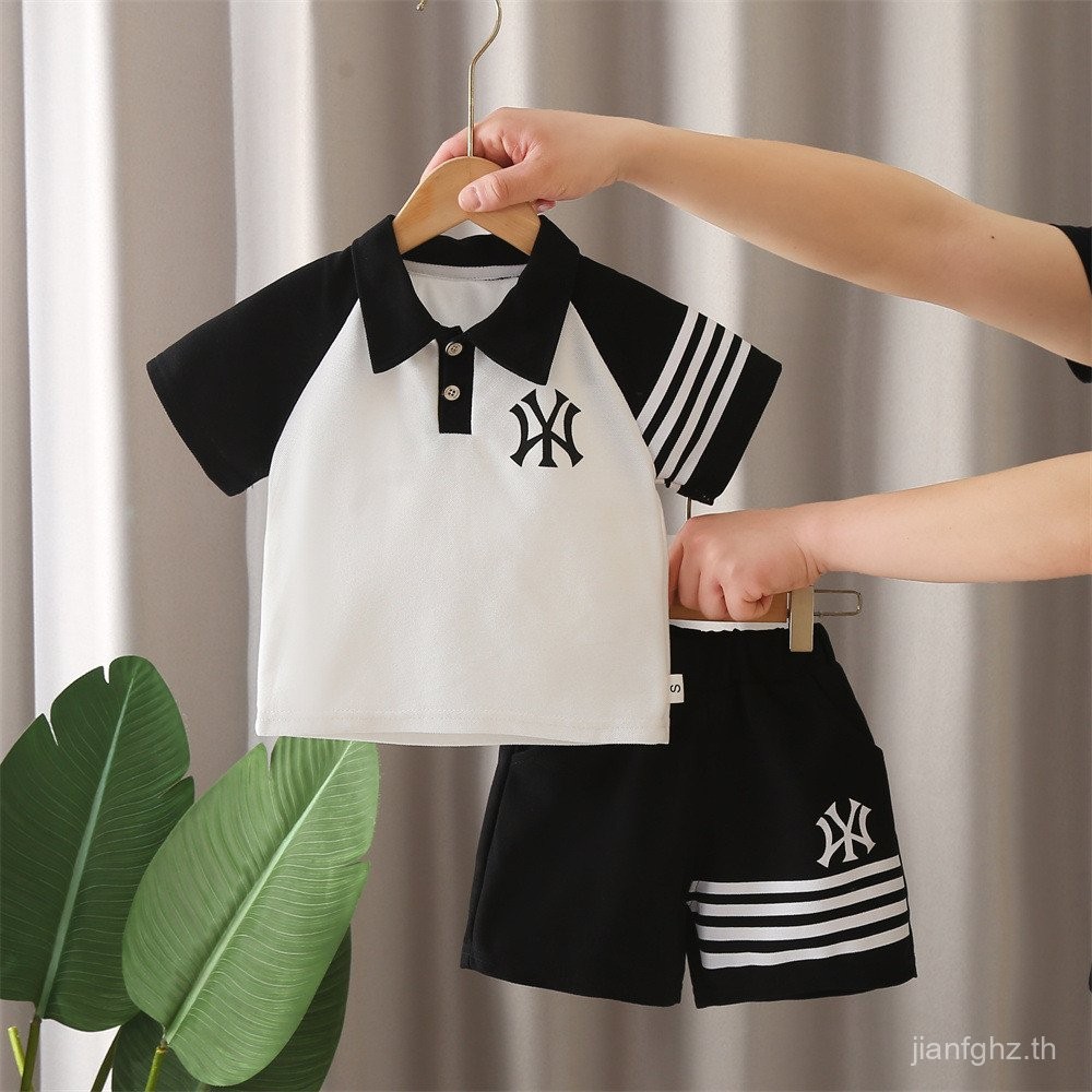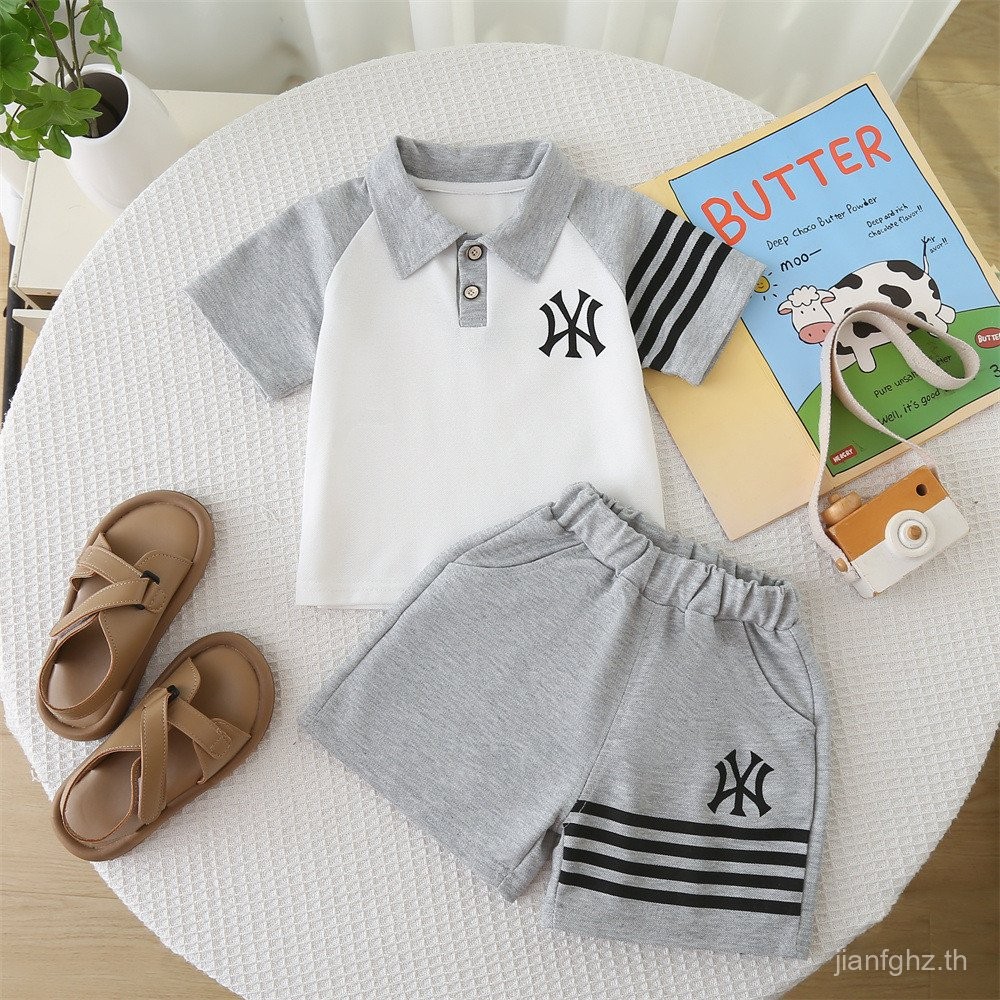 สูทสองชิ้นสำหรับเด็กชาย ฤดูร้อน เสื้อกลมและกางเกงขาสั้น