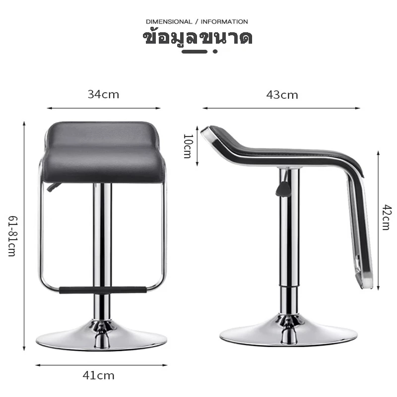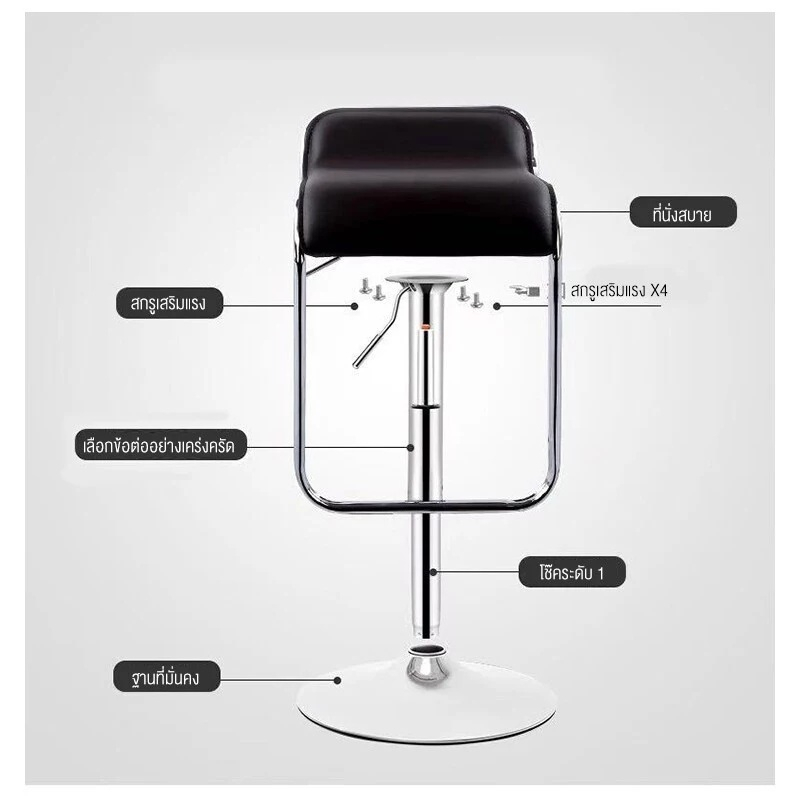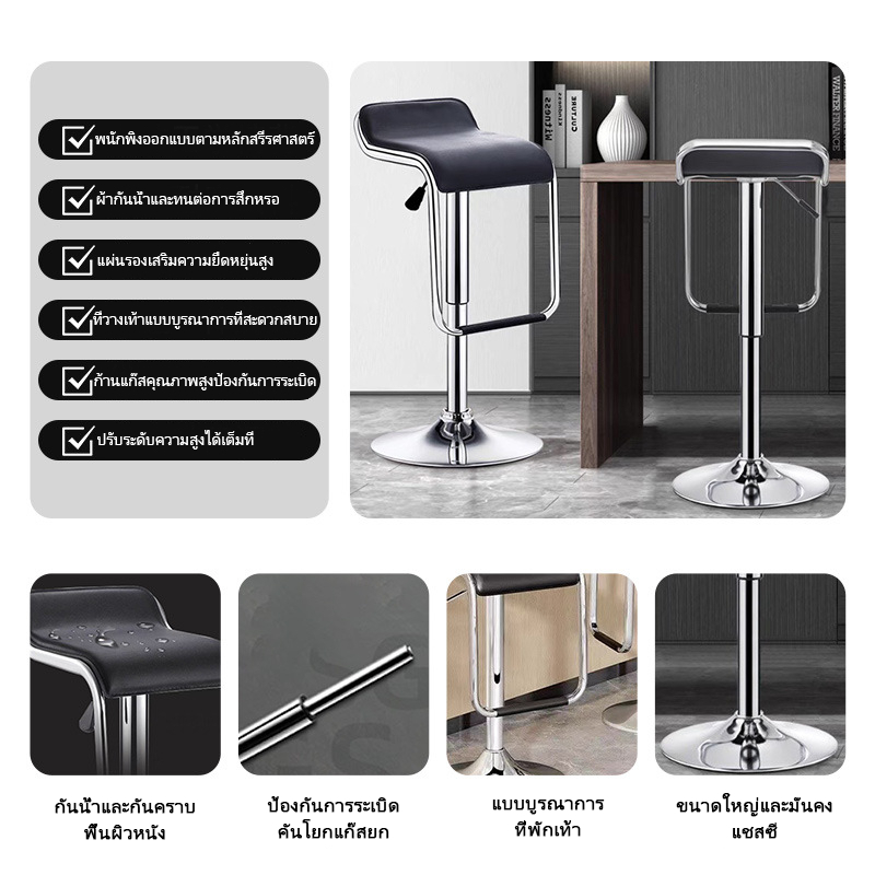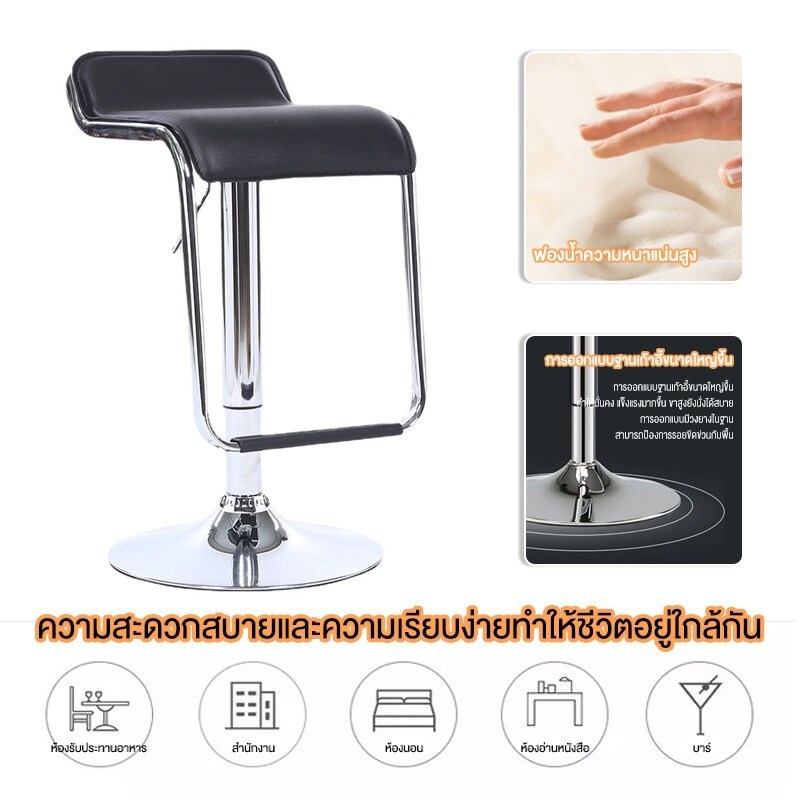 เก้าอี้บาร์ เก้าอี้สูง ปรับระดับได้ หมุนได้360 องศา มีที่วางเท้ารูปตัว S ที่นั่งหนัง PU ขาเหล็กชุบไฟฟ้า Bar chair