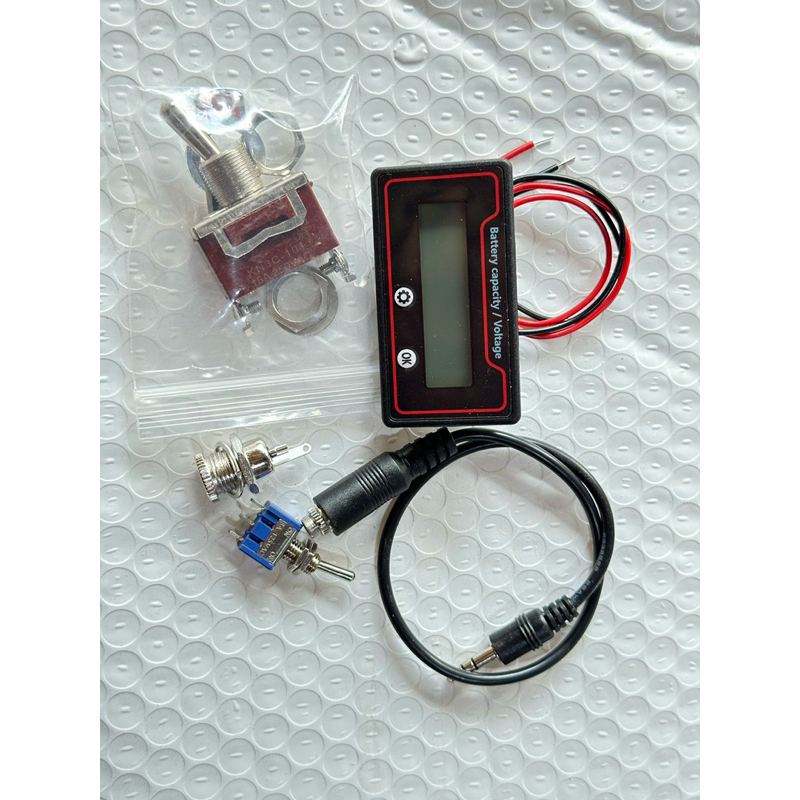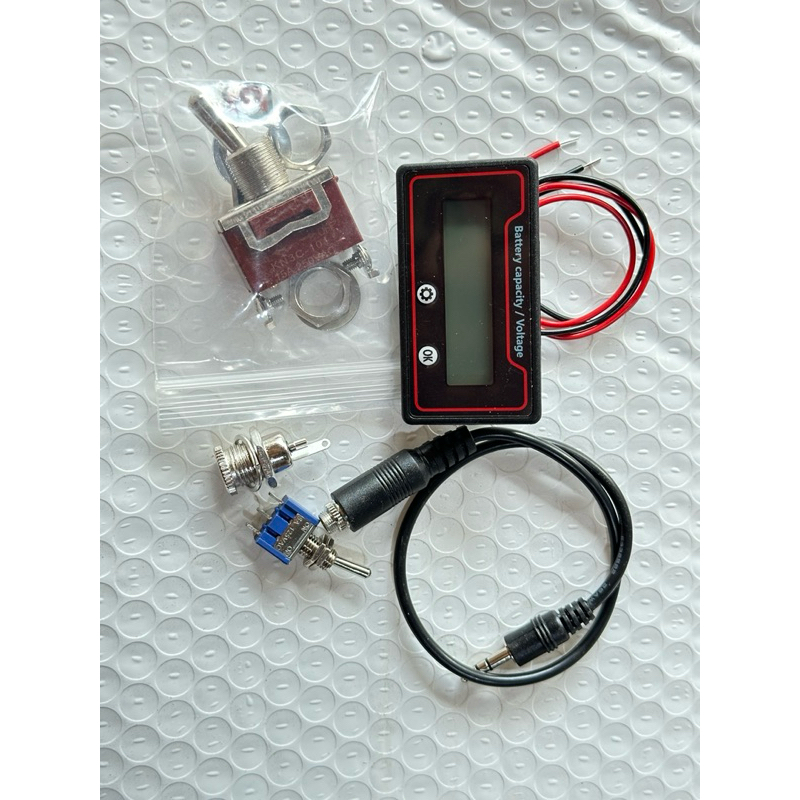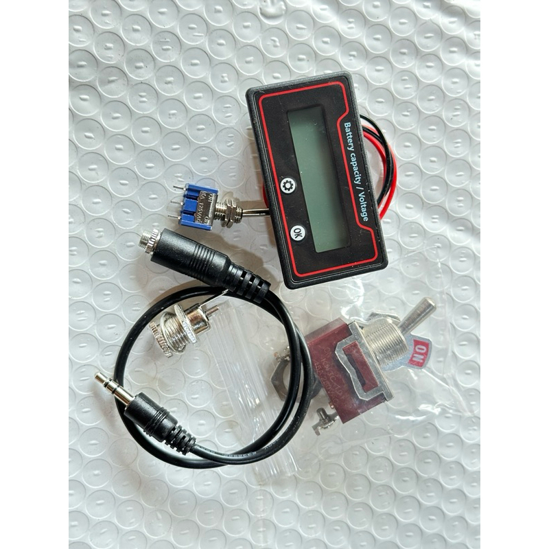 ชุดอุปกรณ์ 5ชิ้น 1.Dc 2.aux 3. สวิตช์Led 4.สวิตช์Power 5.จอเช็คแบต