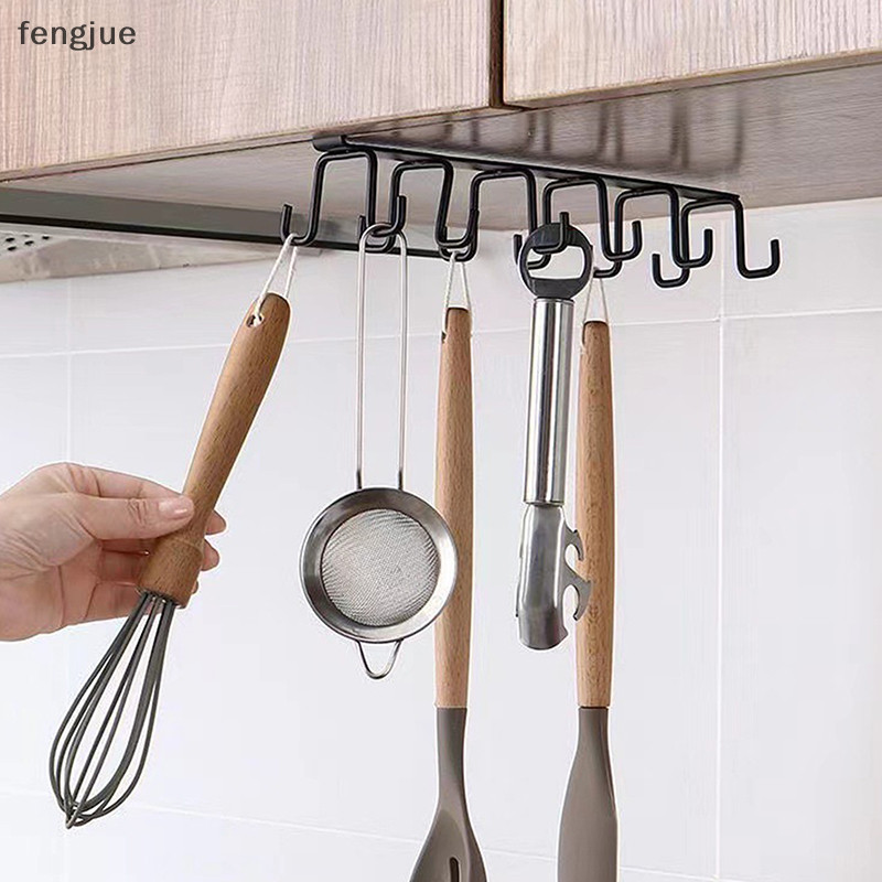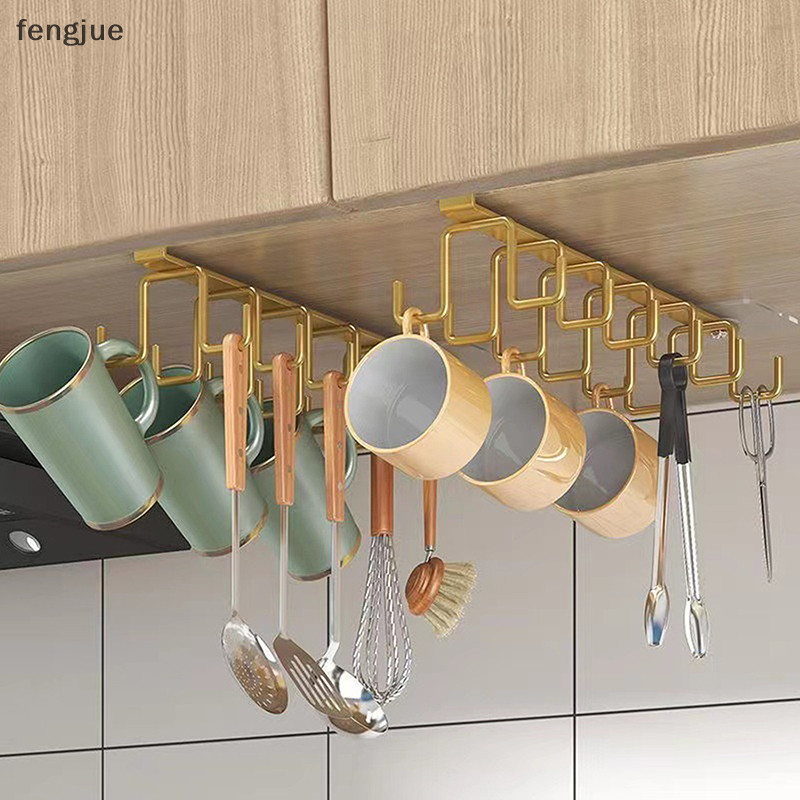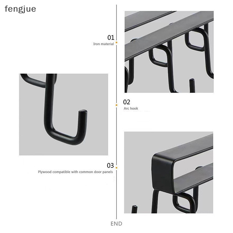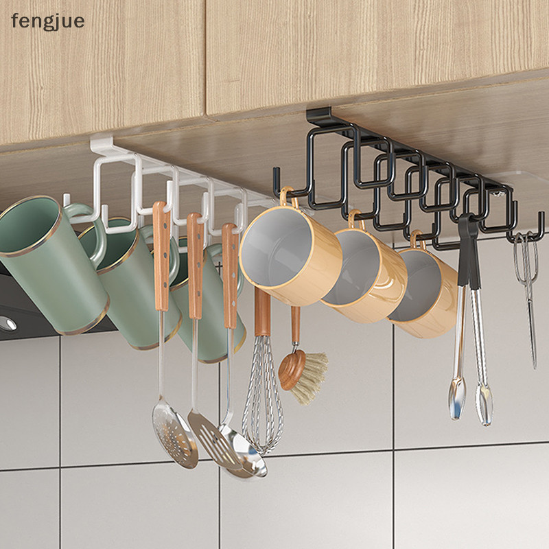 Fengjue Punch-ฟรีตะขอสองแถวห้องครัวภายใต้ชั้นวางถ้วยแก้วตะขอแขวนเหล็กแขวนแร็คผู้ถือตู้ครัวOrganizer TH