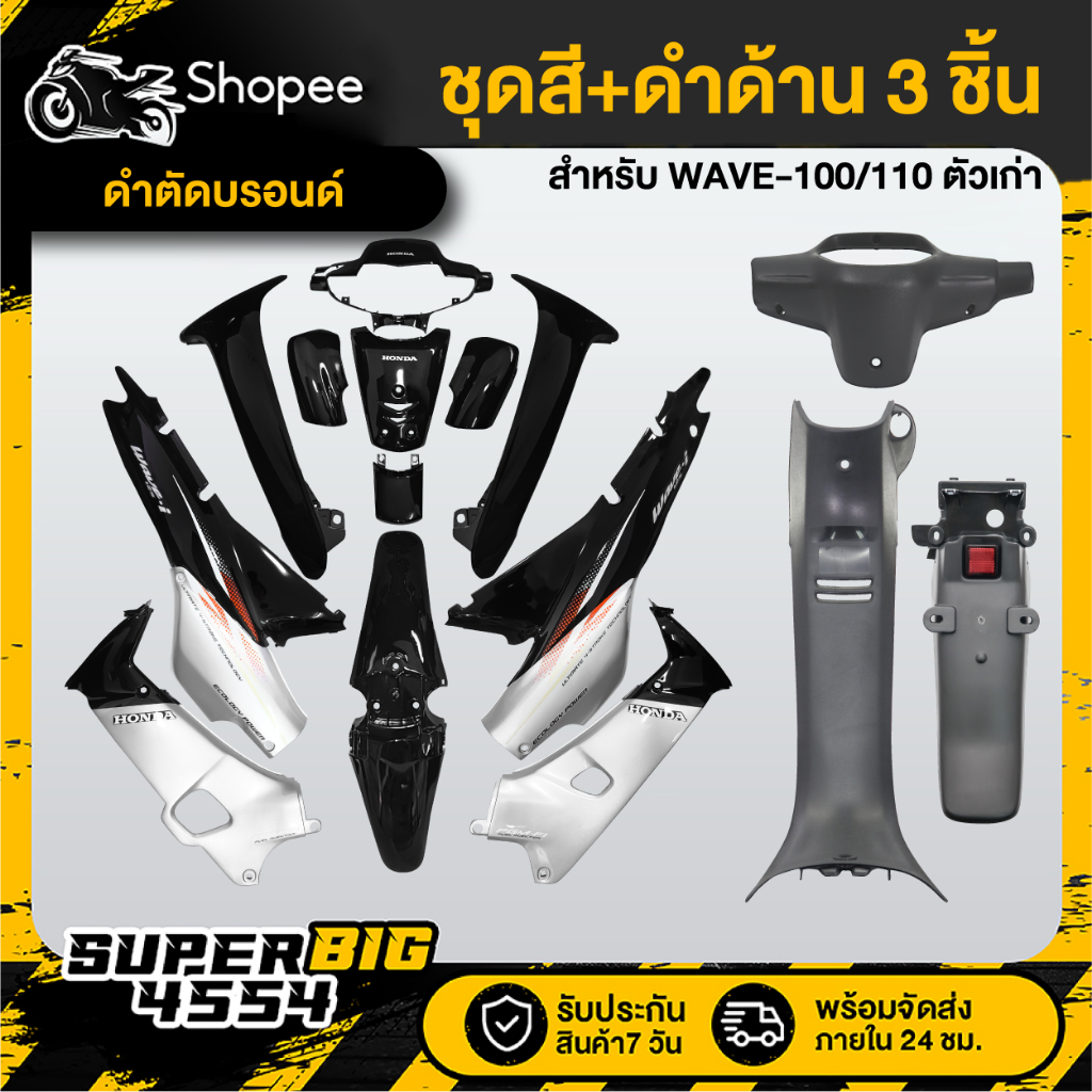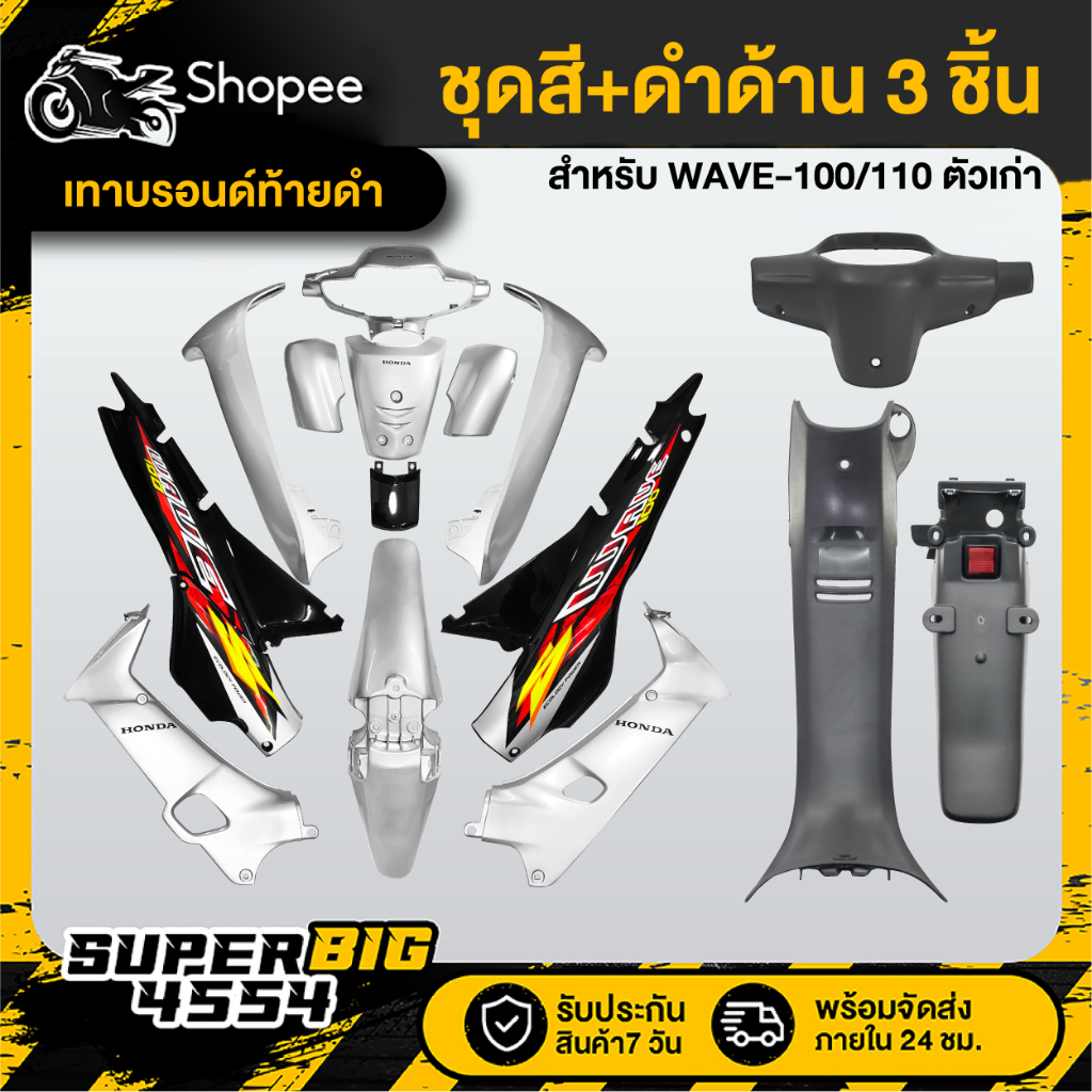 [เลือกสีด้านใน] ชุดสี 12 ชิ้น WAVE-100/110 ตัวเก่า โทนเทา/ดำ+หน้ากากหลัง+คอนโซนกลาง+บังโคลนหลัง ดำด้าน 3ชิ้น