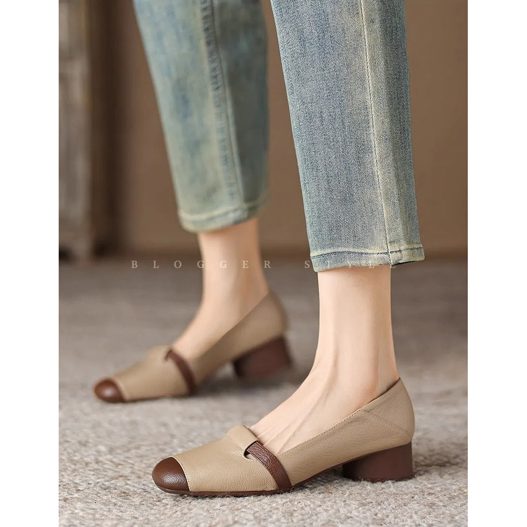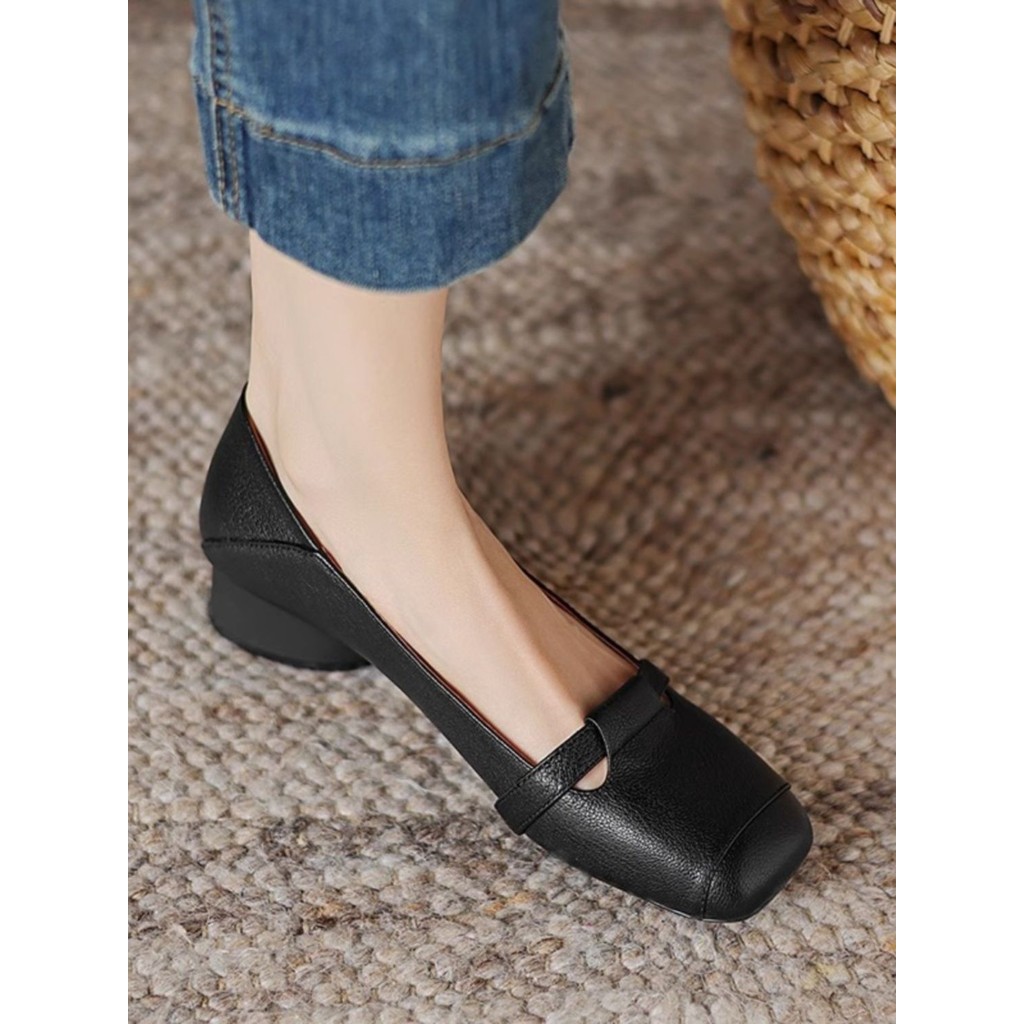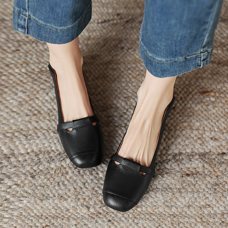 รองเท้าหนังพื้นนุ่มส้นหนาแฟชั่น,รองเท้าขี้เกียจกันลื่นย้อนยุค