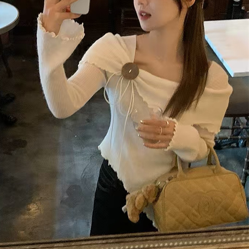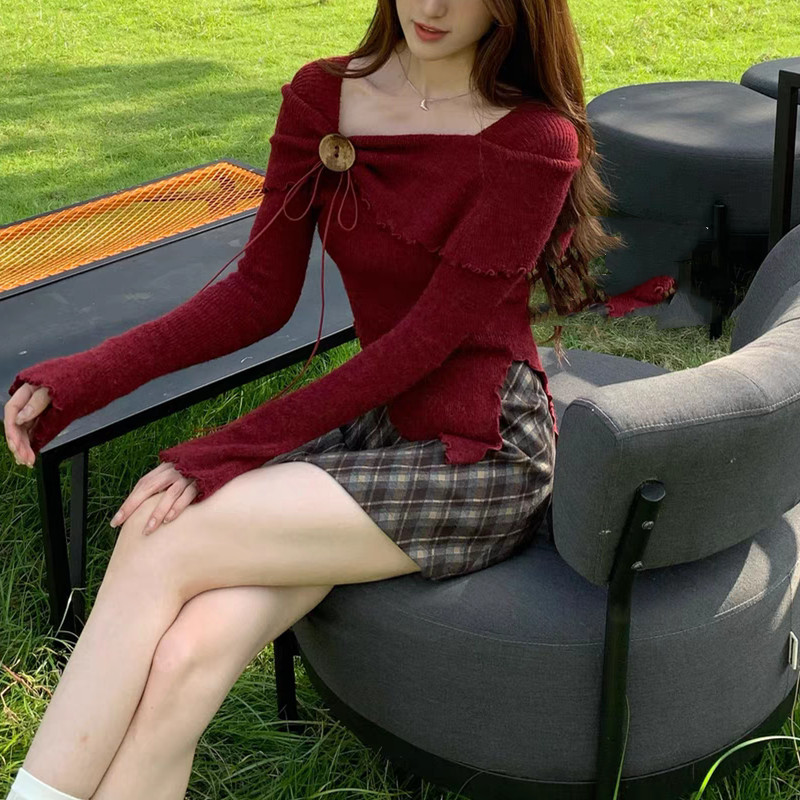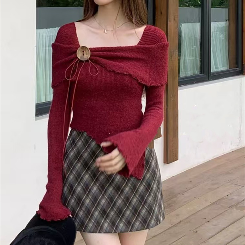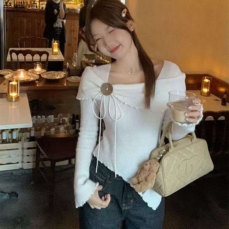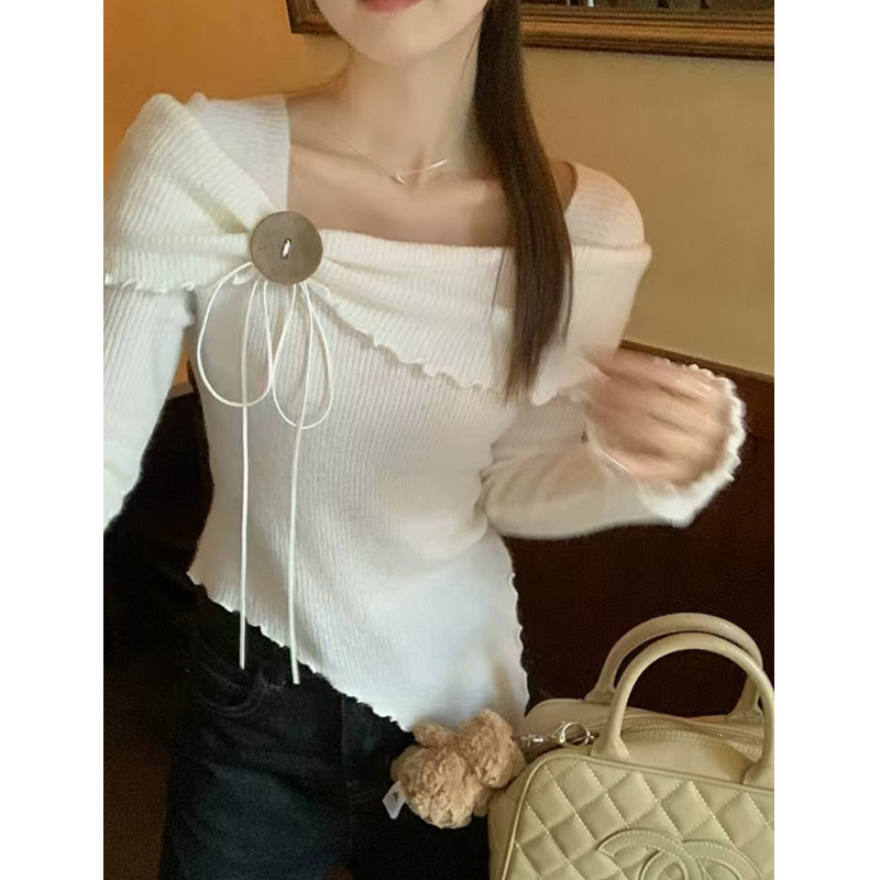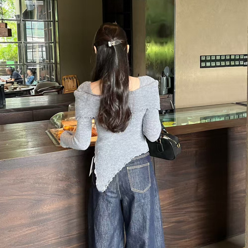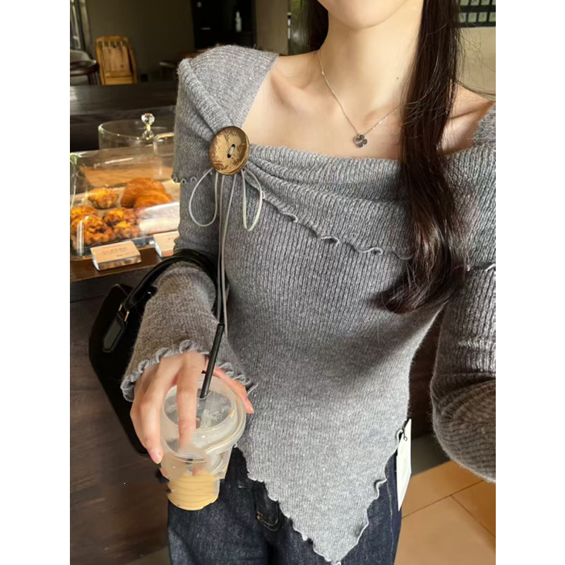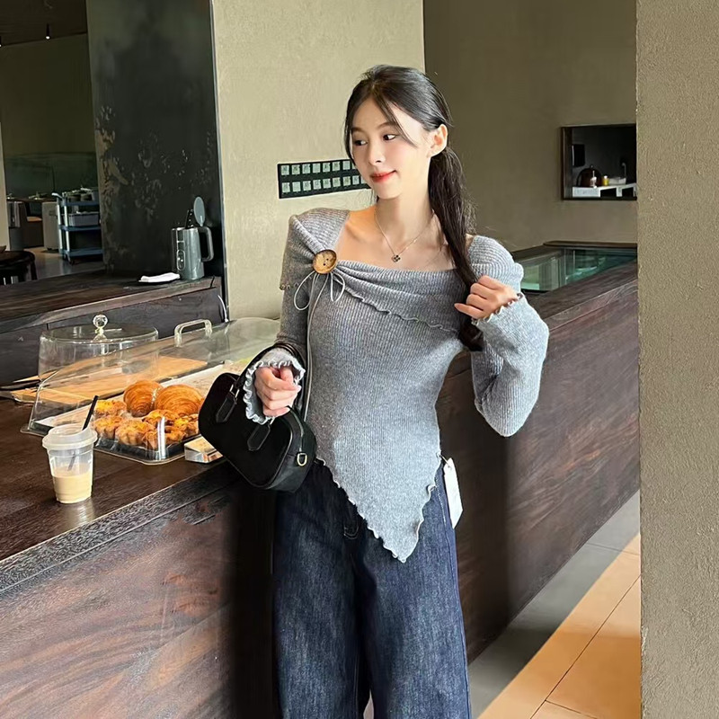 ฤดูใบไม้ร่วงฤดูหนาวสไตล์ใหม่ไม่สม่ําเสมอปิดไหล่เสื้อแขนยาวถักผู้หญิง 241205