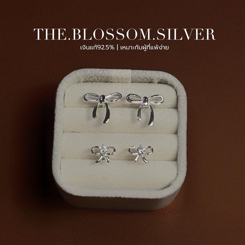 SET Bow02 : เซ็ตต่างหูโบว์เรียบ+ต่างโบว์พลอย | เงินแท้92.5%