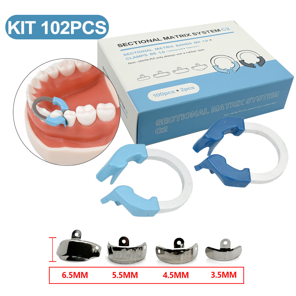 102 ชิ้น/เซ็ตทันตกรรม Matrix Bands NITI Matrices Clamp แหวน Sectional Contoured Matrix ระบบนิกเกิลไทเทเนียมหนีบเครื่องมือทันตแพทย์