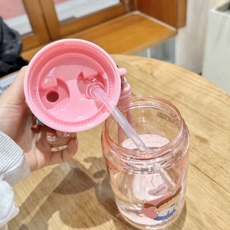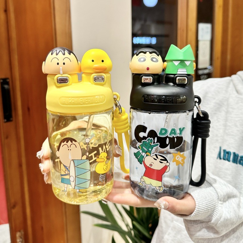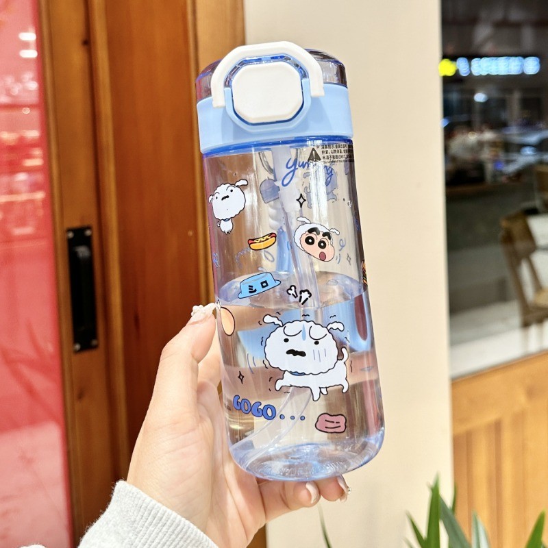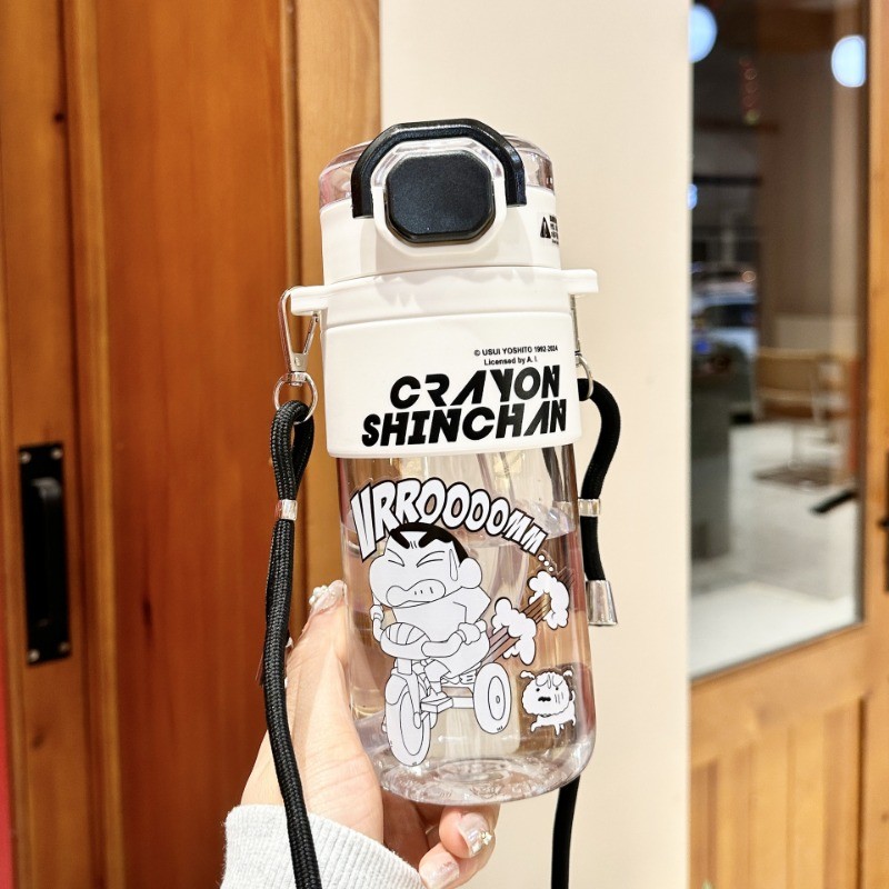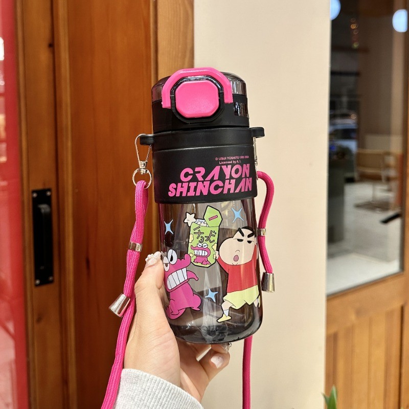 Crayon Shin Chan ถ้วยน้ํา 620ml ขวดน้ําความจุขนาดใหญ่ขวด Tritan Bpa ฟรีเด็กนักเรียนแบบพกพาถ้วยพลาสติกผสมมือถือ Crayon Shin Chan ขวดน้ํา C