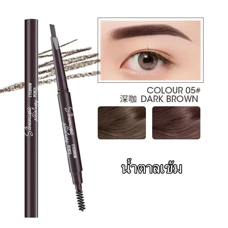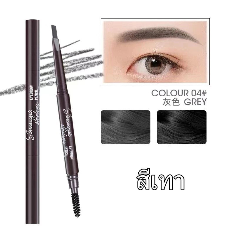 ดินสอเขียนคิ้ว กันน้ำ ดินสอเขียนคิ้วแบบหมุน 2 in 1 มีแปรงปัดคิ้วในตัว มี 4 สีให้เลือก