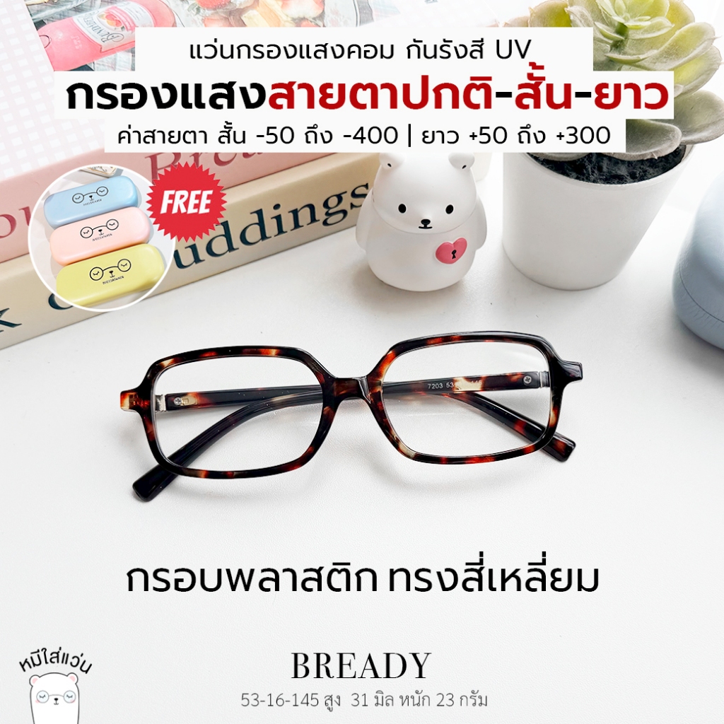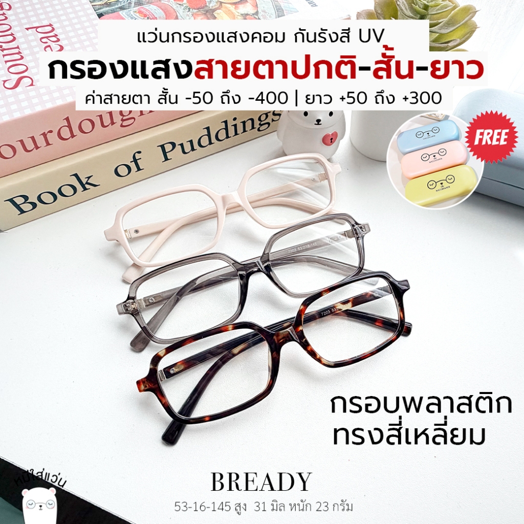 แว่นกรองแสง สายตาสั้น / สายตายาว ออกแดดเปลี่ยนสี กันแสงคอม บลูบล็อค ออโต้ ตัดแว่น Bready สีเทา