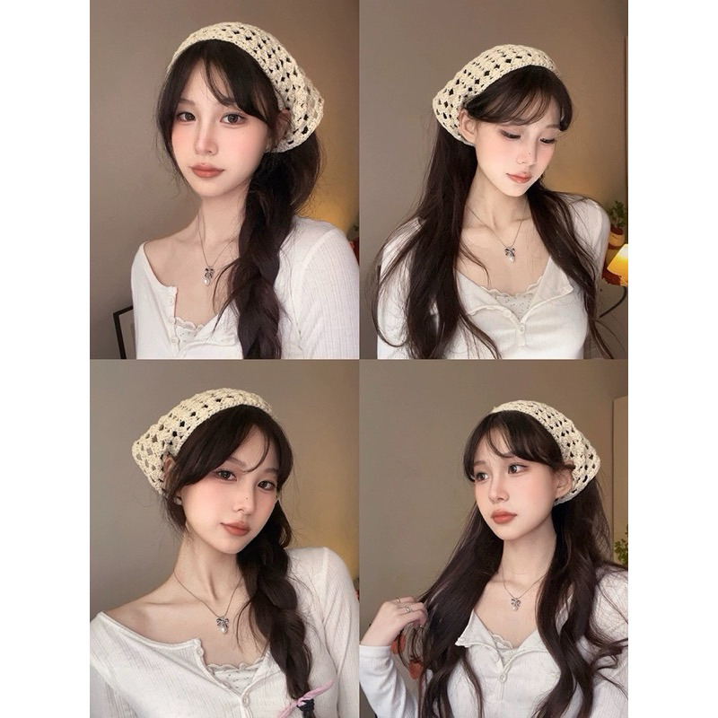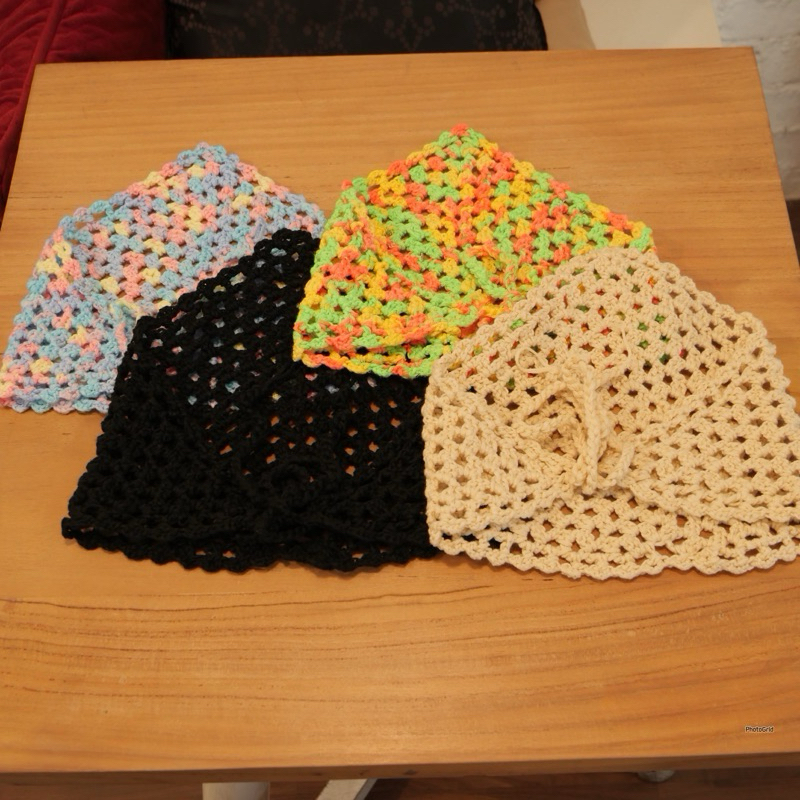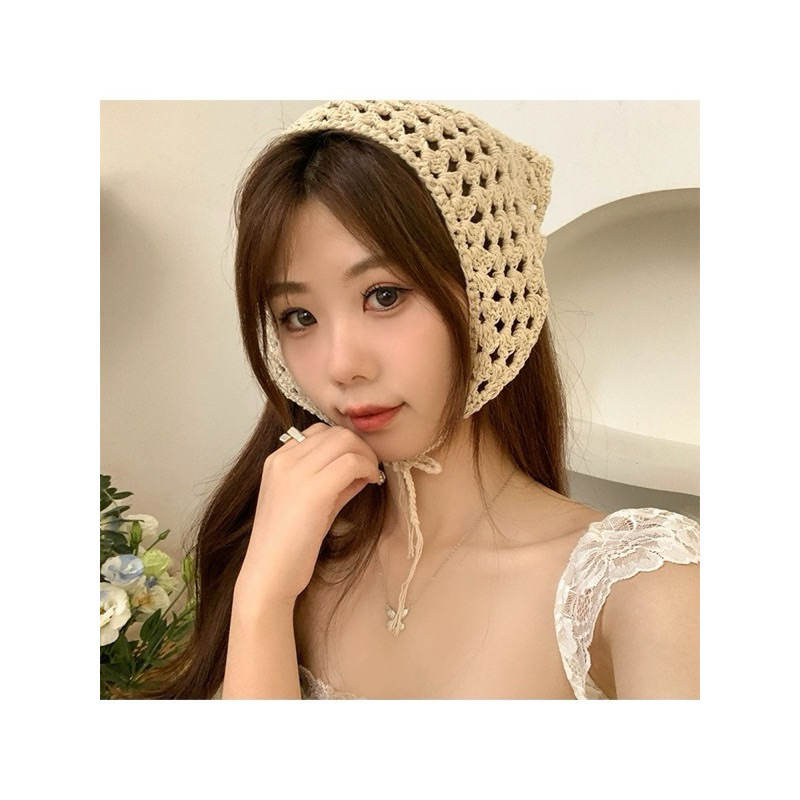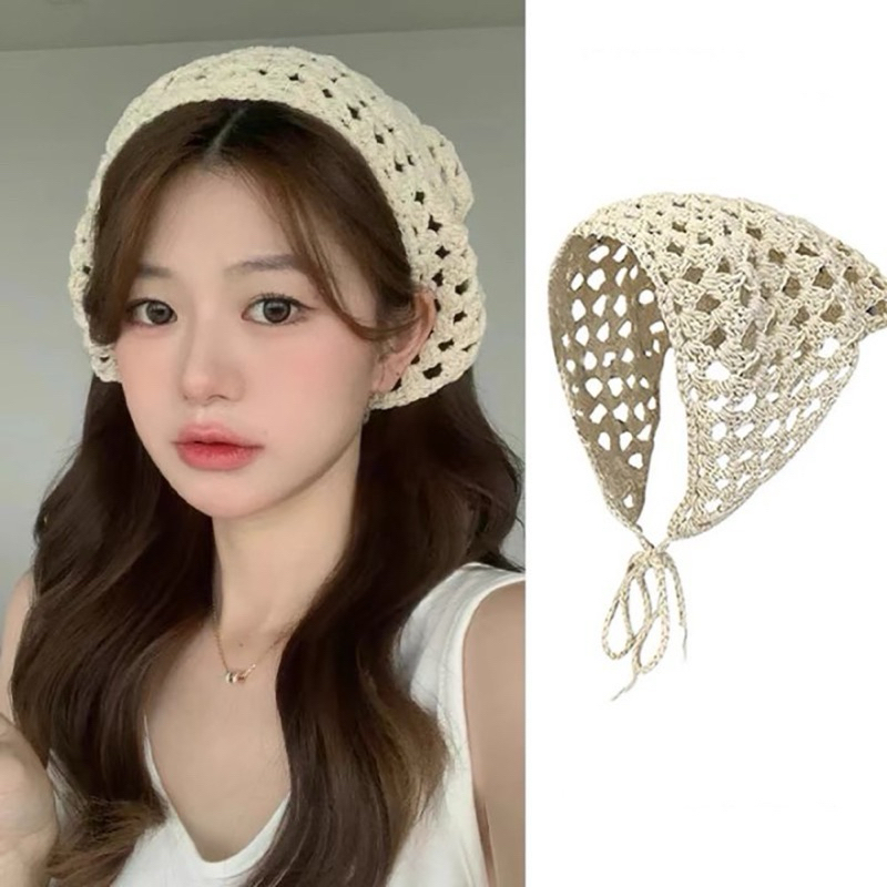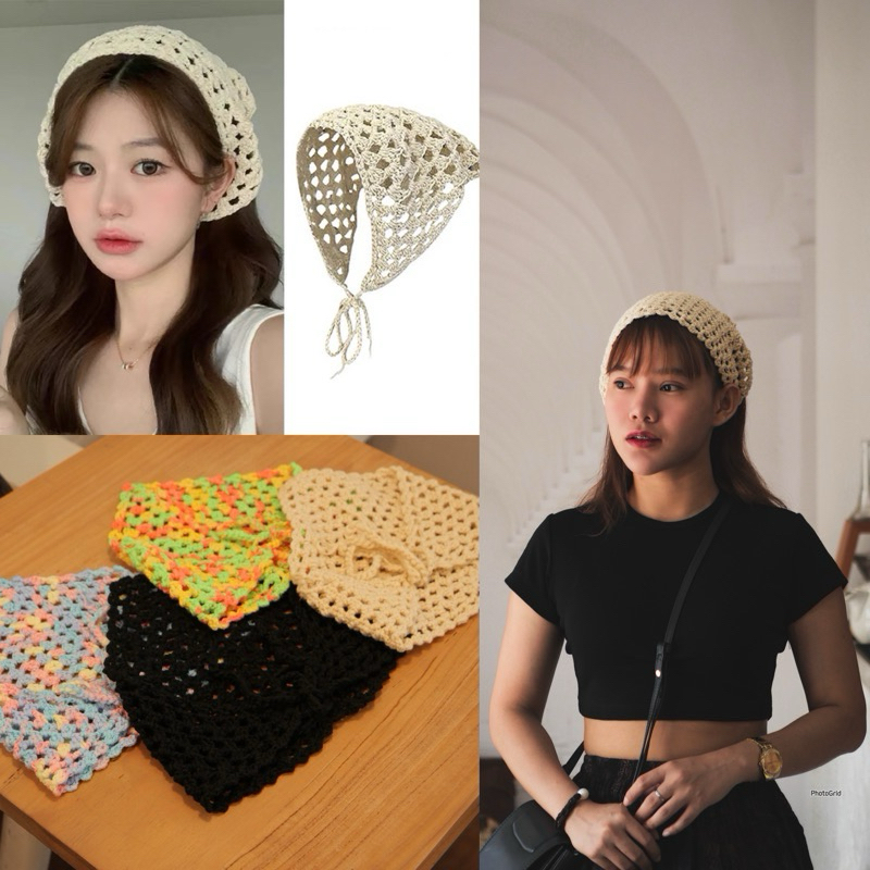 ผ้าโพกผมแบบถักไหมพรม งานถักผ้าแน่นนิ่มค่ะ ไหมพรมถักอย่างดี ใช้ผูกคลุมผมน่ารักมินิมอลมาก งานถักHandmade นะคะ