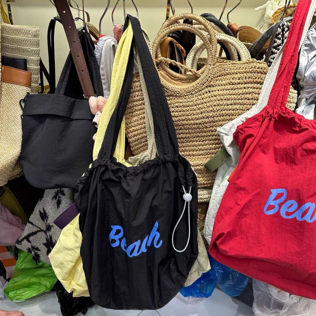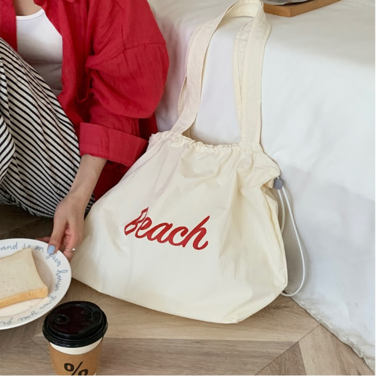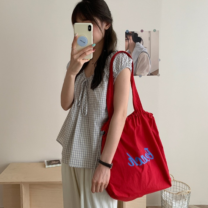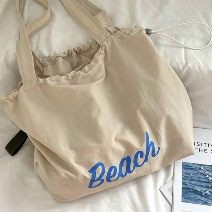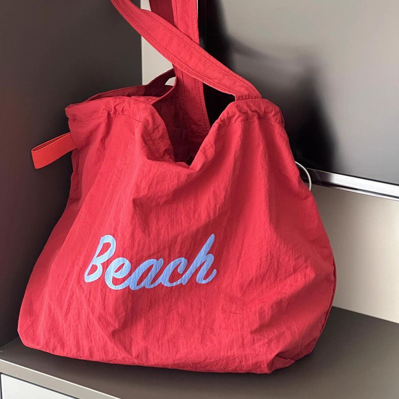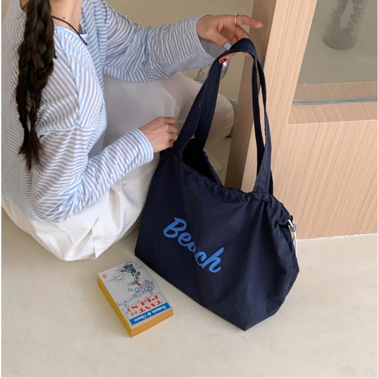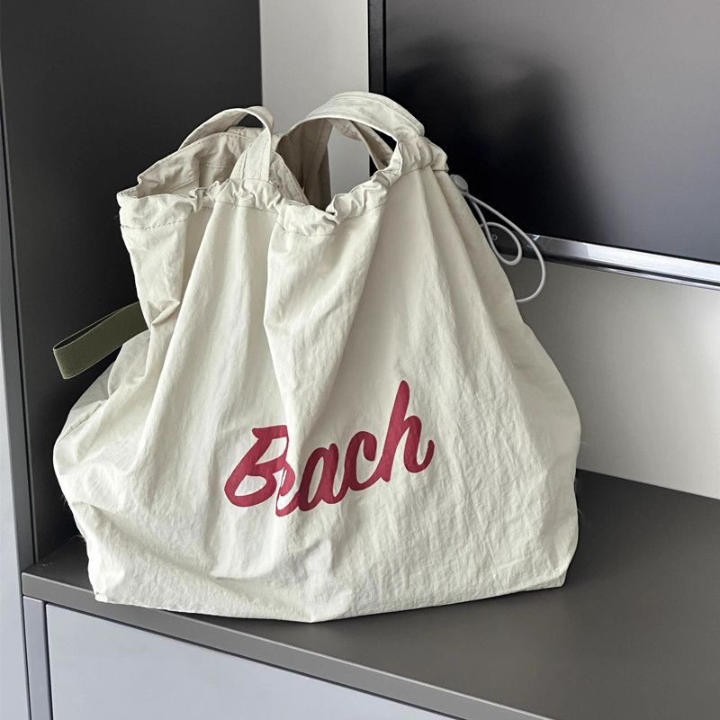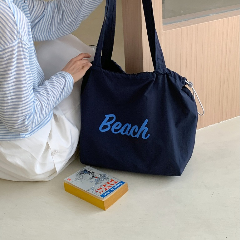 ญี่ปุ่นตัวอักษรที่เรียบง่ายพิมพ์ เชือกรูด กระเป๋าถือไนลอนสุภาพสตรีลมสบาย ๆ ความจุขนาดใหญ่สื่อสารแบบพกพาด้านข้างกระเป๋าสะ