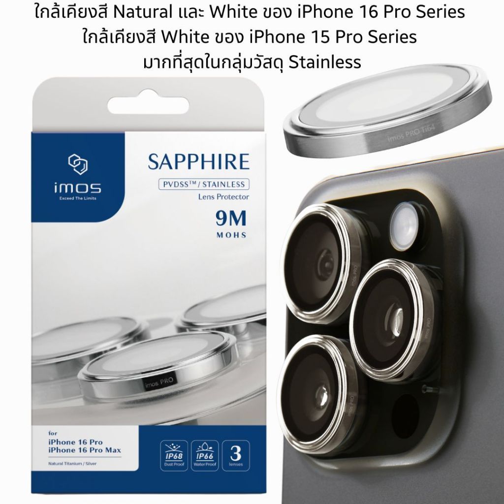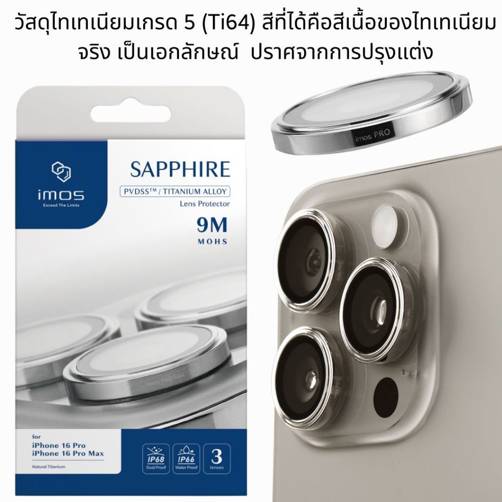 iMos Sapphire PVDSS Pro Lens Ring กระจกกันเลนส์กล้อง สำหรับ iPhone 16 Pro / 16 Pro Max
